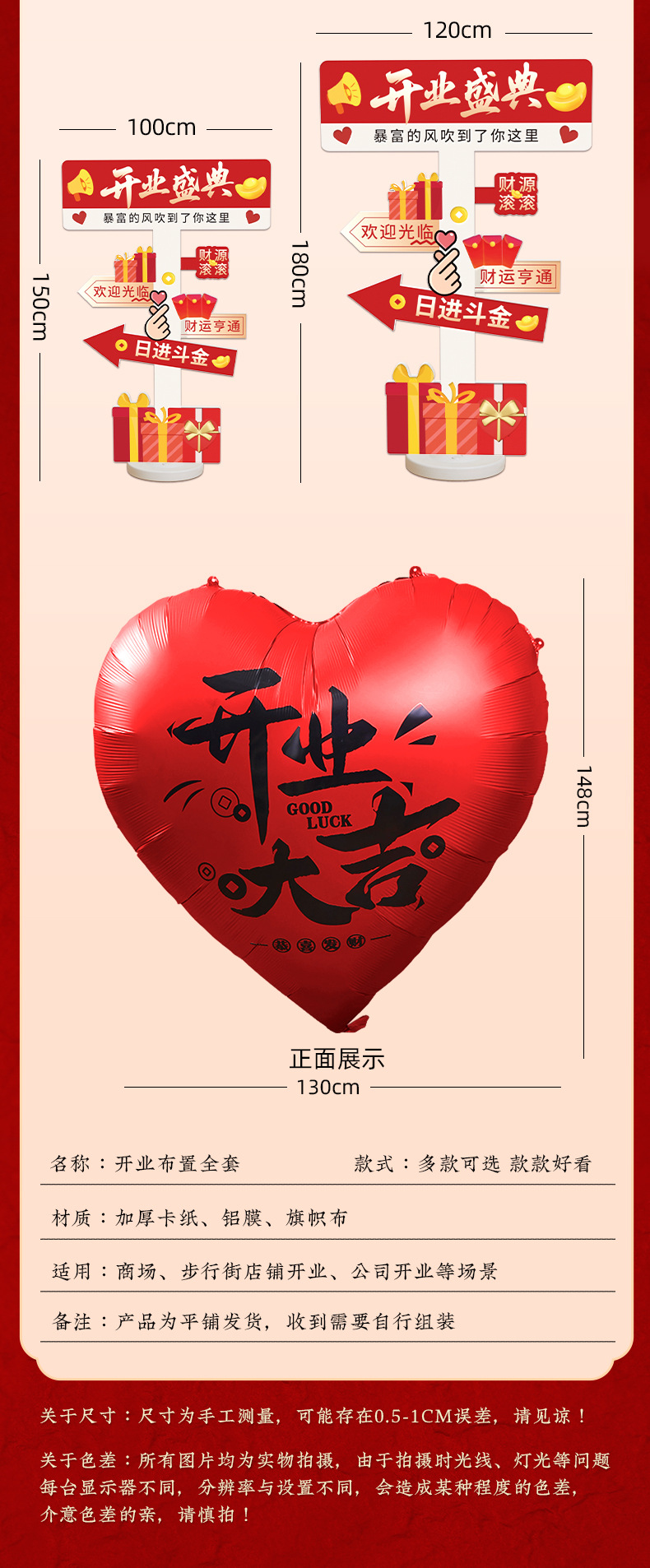 尺寸 【开业大吉挂布+黑字爱心气球+生意兴隆堆头】送全套配件,主图款【开门红挂布+金字爱心气球+生意兴隆堆头】送全套配件,开业布置套装全套A(含1.5米路引kt板牌),开业布置套装全套B(含1.8米路引kt板牌),开业布置套装全套C(含1.5米路引kt板牌),开业布置套装全套D(含1.8米路引kt板牌),1.5米开业庆典路引kt板1个(含立柱),1.8米开业庆典路引kt板1个(含立柱),金字款【爱心气球+地堆盒6个】送手动打气筒,黑字款【爱心气球+地堆盒6个】送手动打气筒,新品【6个】30cm开业地堆盒(六六大顺)