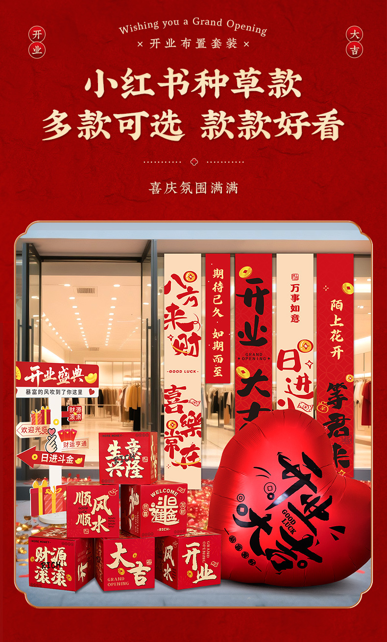 オープン大吉雰囲気配置装飾品儀式感新店シーンアウトドアショーウインドー店の入り口のバナー