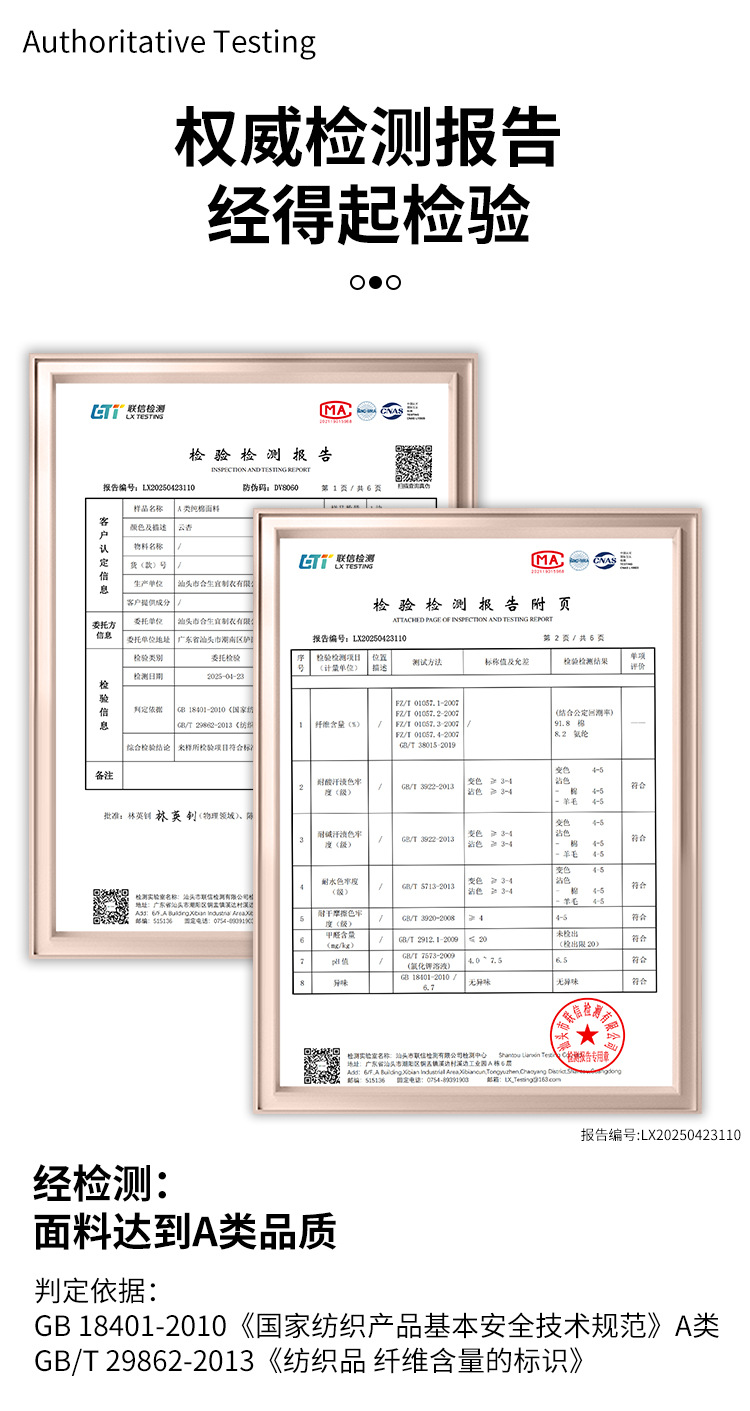 【吊牌上有执行标准,安全类别,工厂信息等信息】