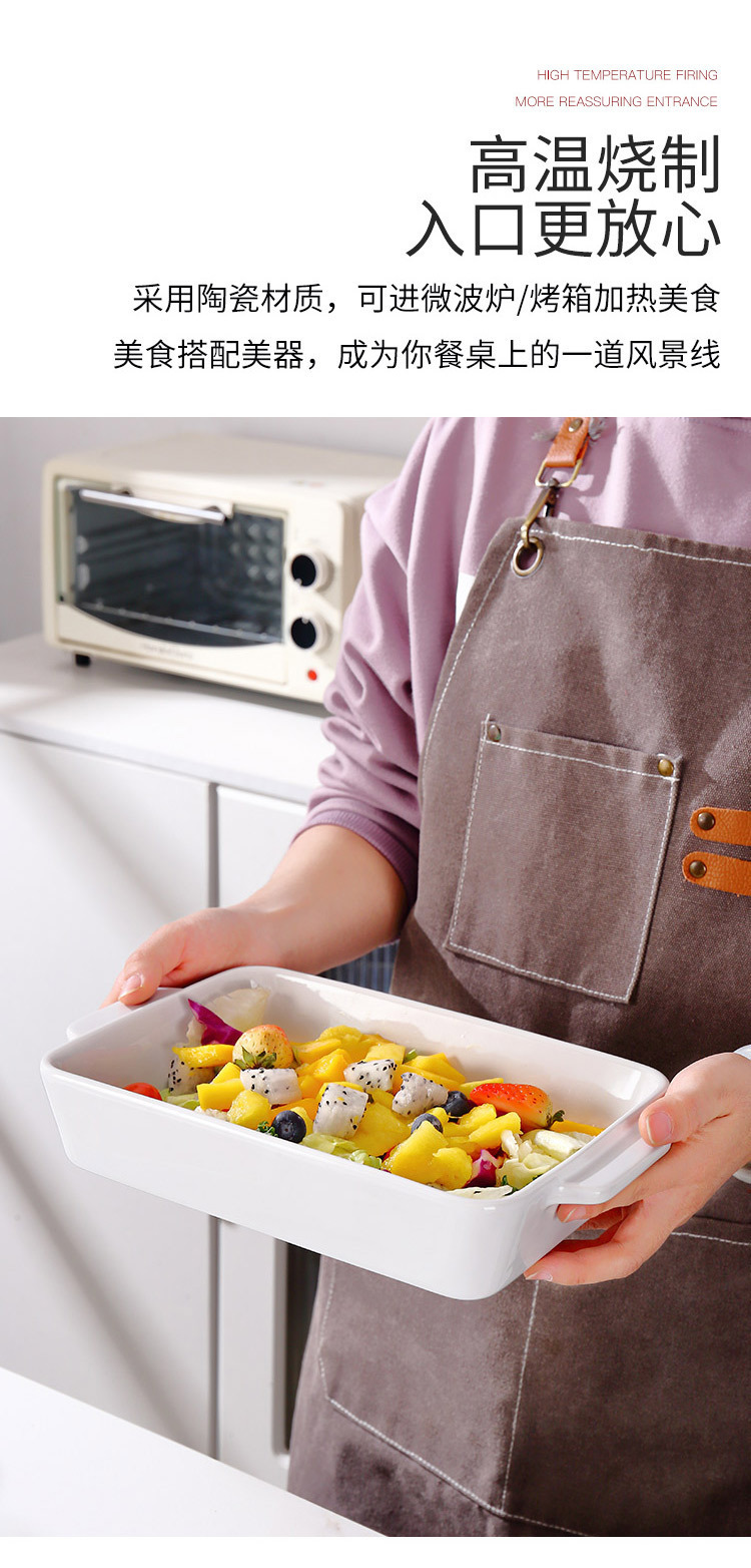 北欧シンプルな純白長方形の両耳焼き皿陶磁器家庭用オーブン皿グラタン皿パスタ皿サラダ皿