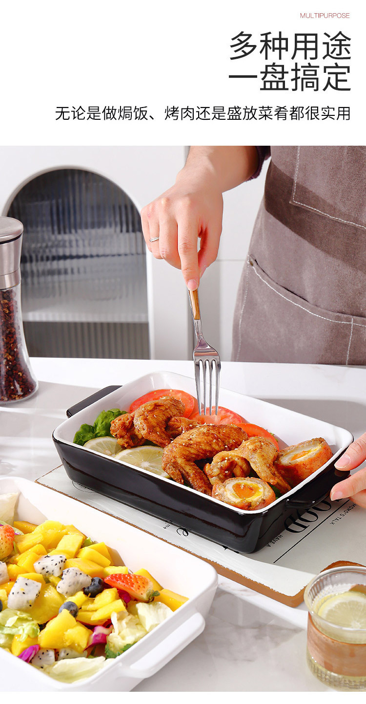 跨境北欧长方形双耳烤盘陶瓷焗饭盘微波炉烤箱适用大容量烘焙烤盘