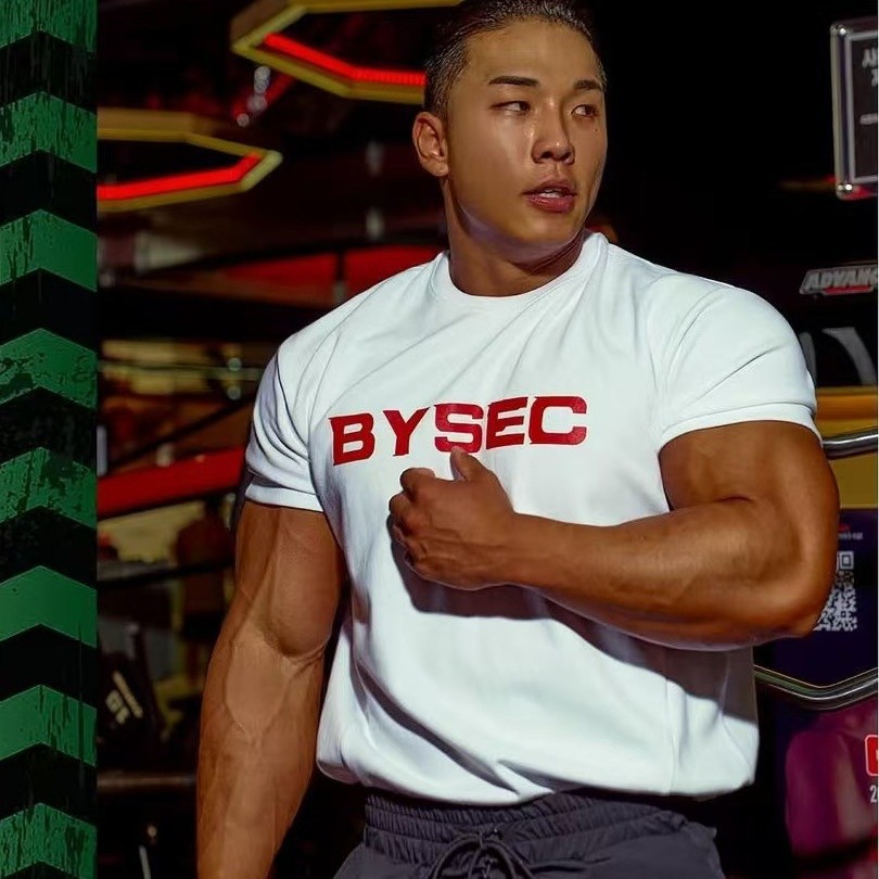 マッスルフィットネスアメリカンブラザー半袖スポーツ新しい夏のバスケットボールTシャツトップランニングカジュアルラウンドネックストレッチ