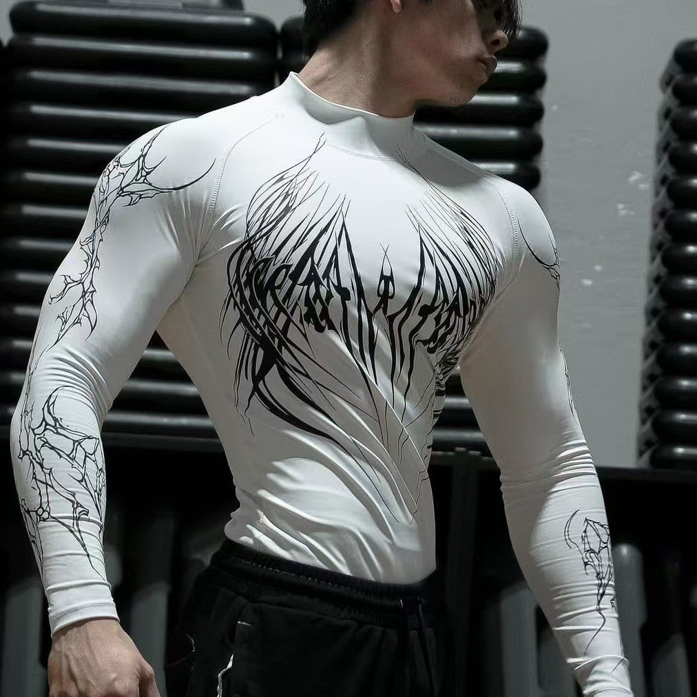 Breathedivinity 2025 男士长袖印花紧身衣 高领运动健身速干