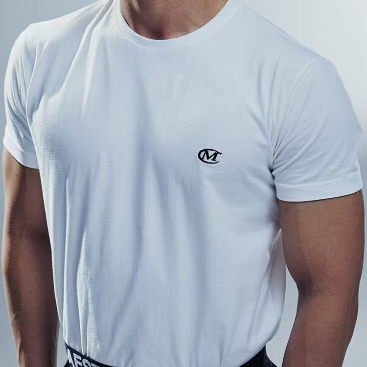 マッスルフィットネスブラザーズ夏の新しいスポーツフィットネスラウンドネックコットン半袖通気性カジュアルトレーニングメンズTシャツランニング