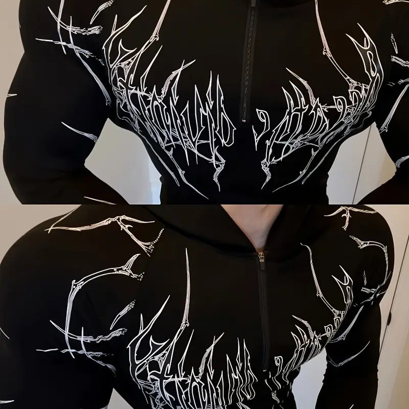 Breathedivinity 2025 男士运动健身连帽紧身衣 印花半拉链速干高