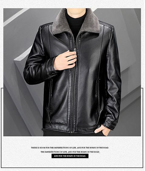 皮衣男翻领加绒加厚防寒保暖中老年秋冬季短款男士皮夹克冬装外套