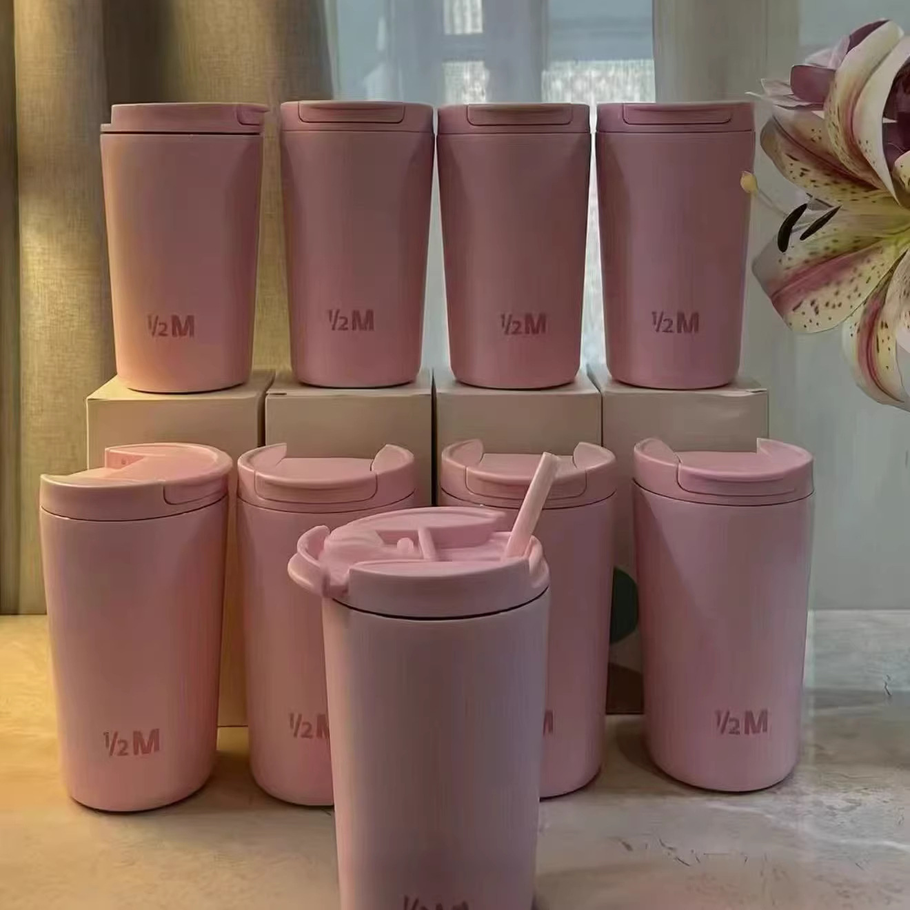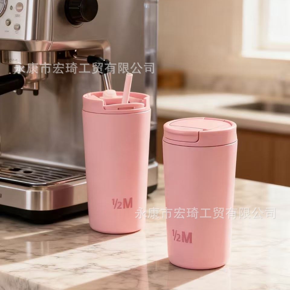 新款跨境304不锈钢咖啡杯带刻度保温杯吸管杯便携网红水杯随行杯