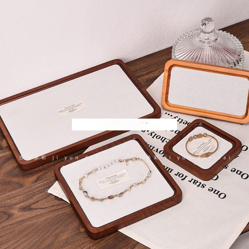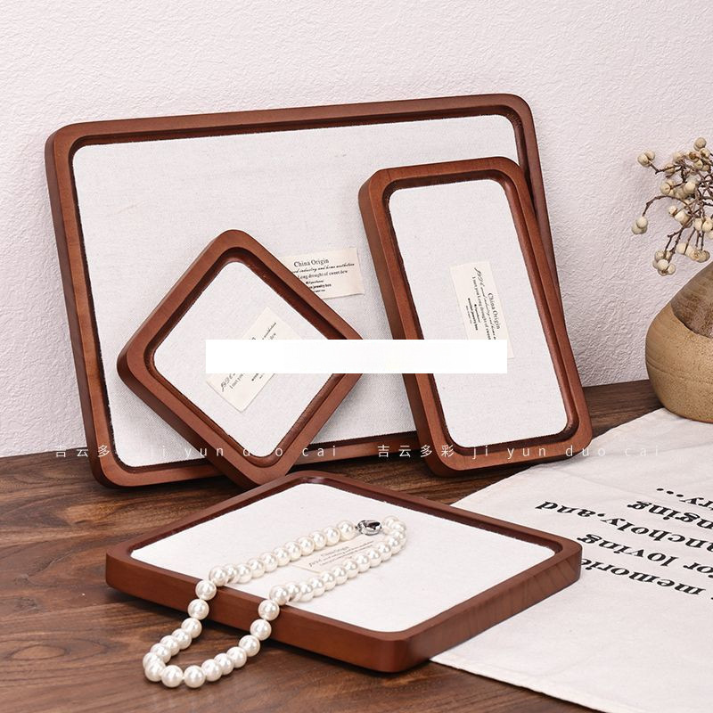 高档实木文玩珠宝首饰托盘戒指手镯项链看货盘饰品桌面收纳展示盘