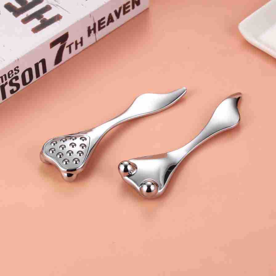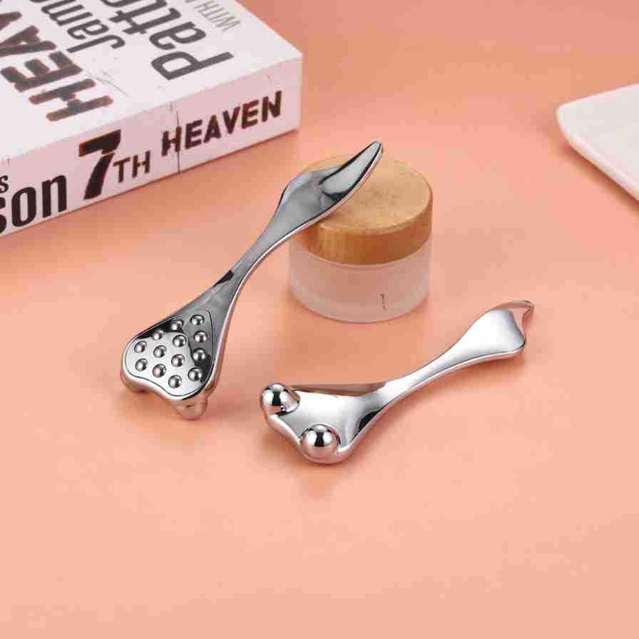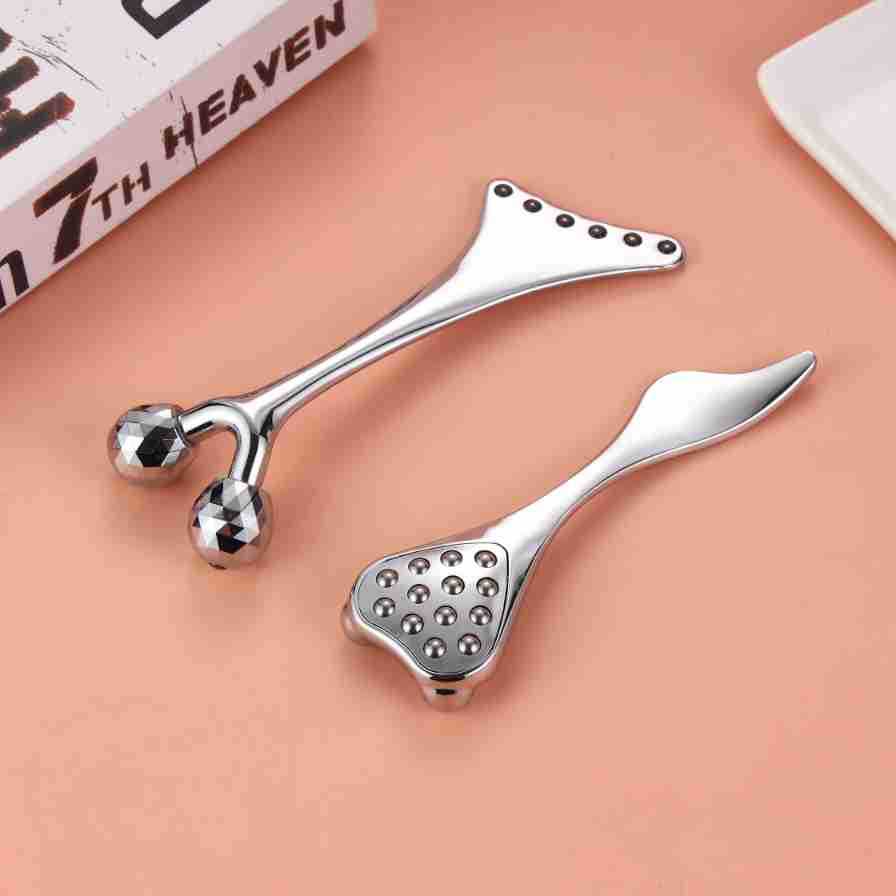 新款不锈钢美容按摩面脸部刮板按摩套装 心形头部冰敷金属刮板