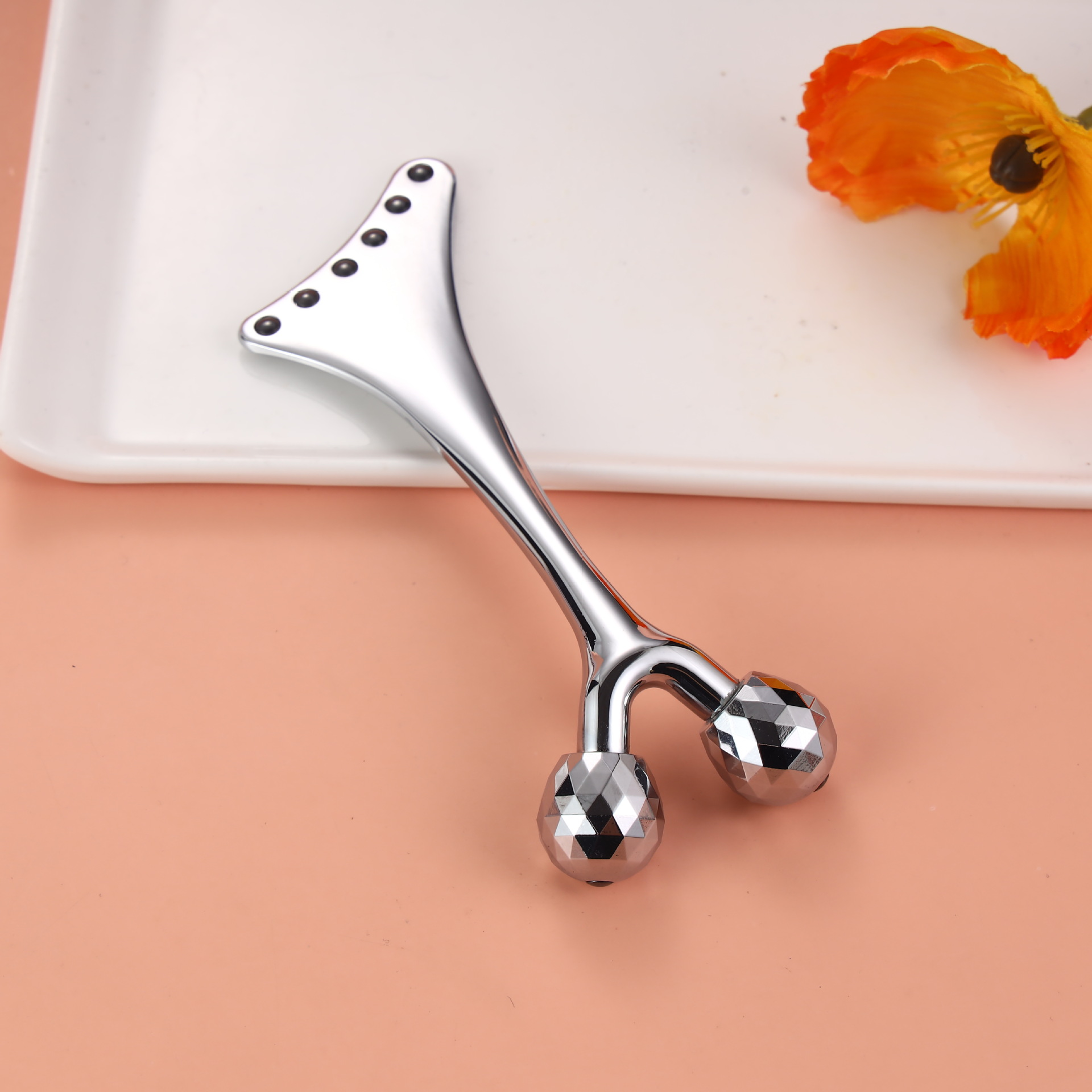 メーカーは亜鉛合金のダブルヘッドのローラーマッサージ器の顔の目のローラーの美器具の金属のローラーのマッサージ器を供給します。