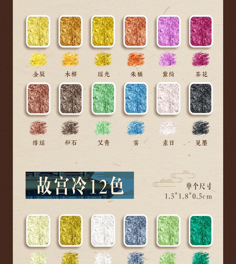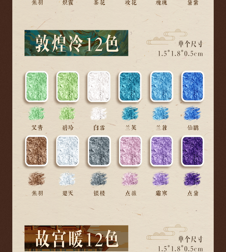 颜色 【180色】大全套98色珠光+82色纯色/送调色盘+水画笔,【98色】全套98色珠光/送调色盘+水画笔,【60色】敦煌故宫全色/送调色盘+水画笔,【48色】敦煌24色+故宫24色/送调色盘+水画笔,【36色】敦煌全色/送调色盘+水画笔,【36色】故宫全色/送调色盘+水画笔,【24色】敦煌暖色+冷色/送调色盘+水画笔,【24色】故宫暖色+冷色/送调色盘+水画笔,【12色】敦煌暖色/送调色盘+水画笔,【12色】敦煌冷色/送调色盘+水画笔,【12色】故宫暖色/送调色盘+水画笔,【12色】故宫冷色/送调色盘+水画笔,【双拼色】金辰+白雪