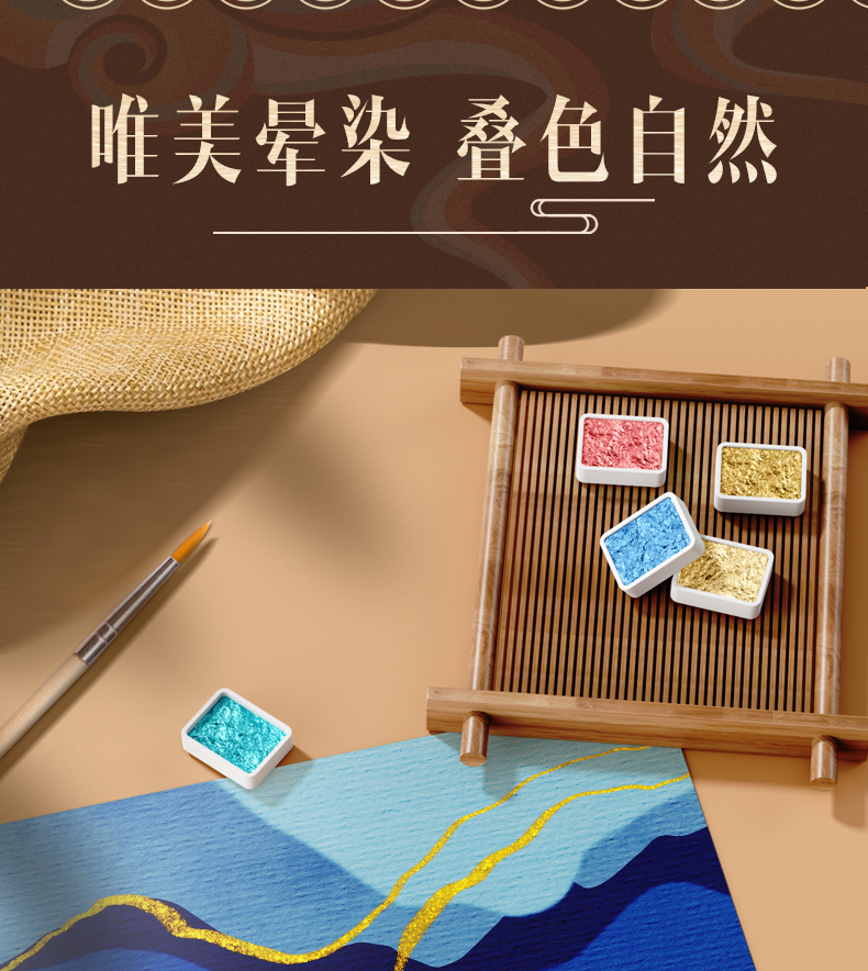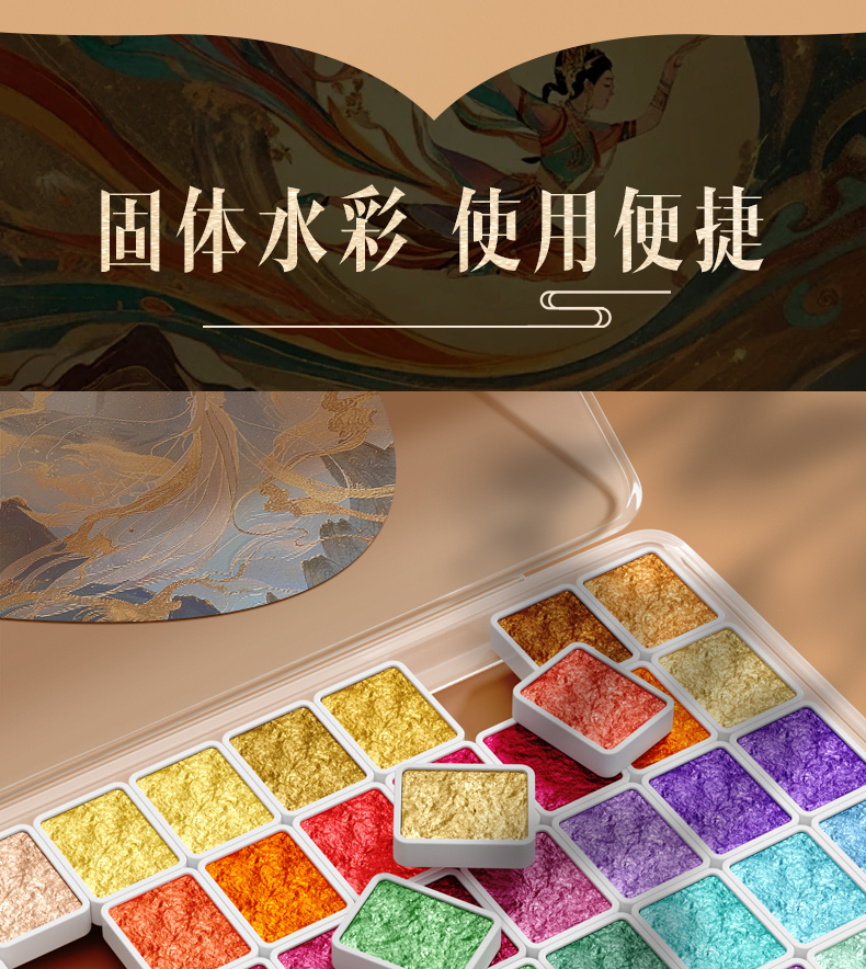 敦煌珠光水彩固体不透明彩绘颜料画画工具套装美术生专用儿童小学
