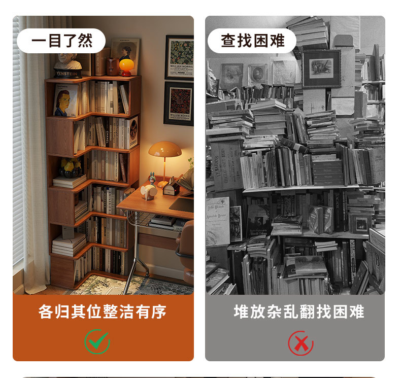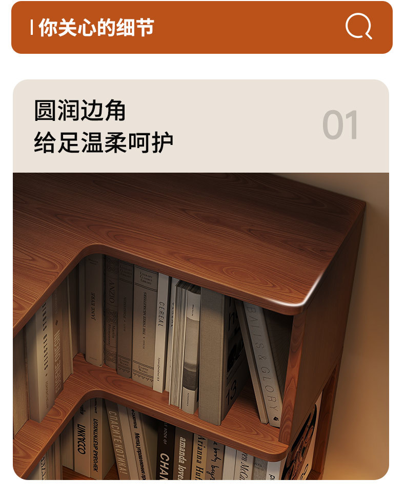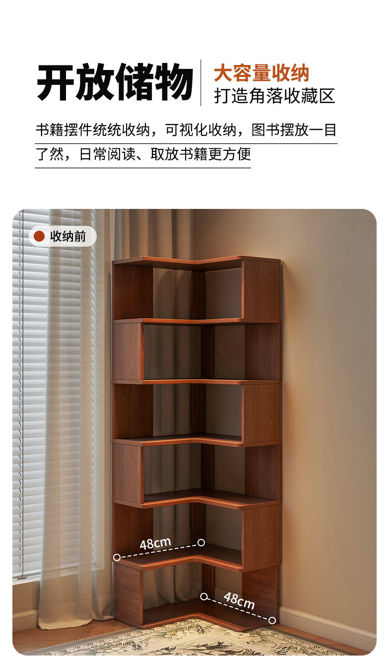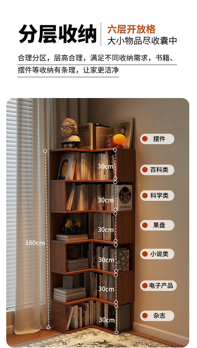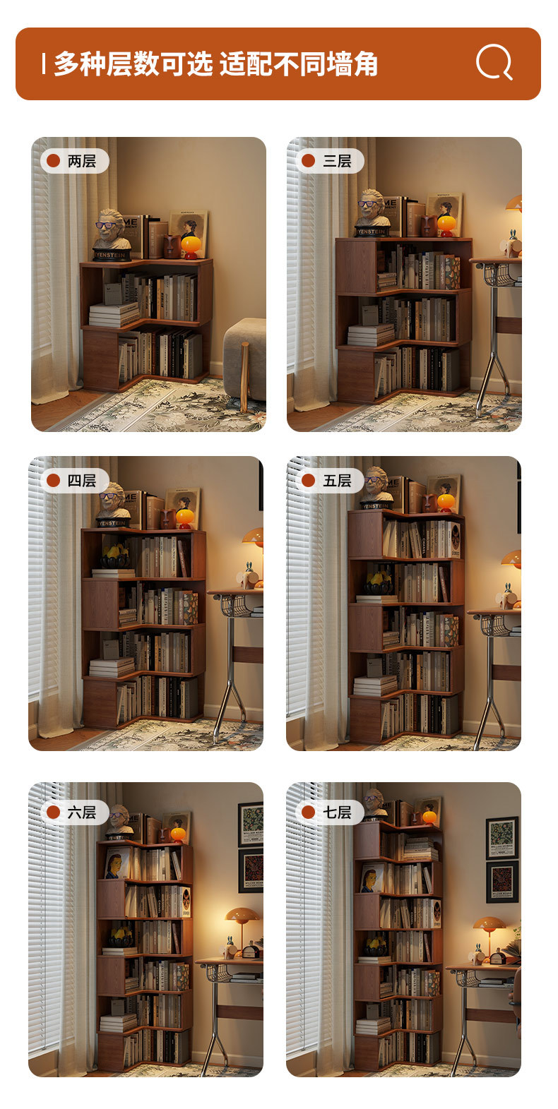本棚無垢材コアコーナー収納ラック本棚コーナー小型家庭用コーナー多層リビングルーム収納キャビネット