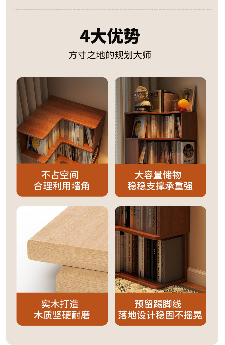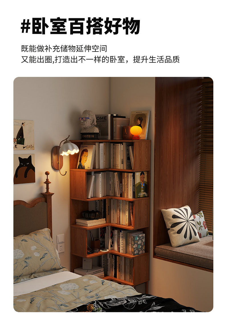实木转角书架落地置物架家用客厅角柜墙角收纳架卧室拐角简易书柜