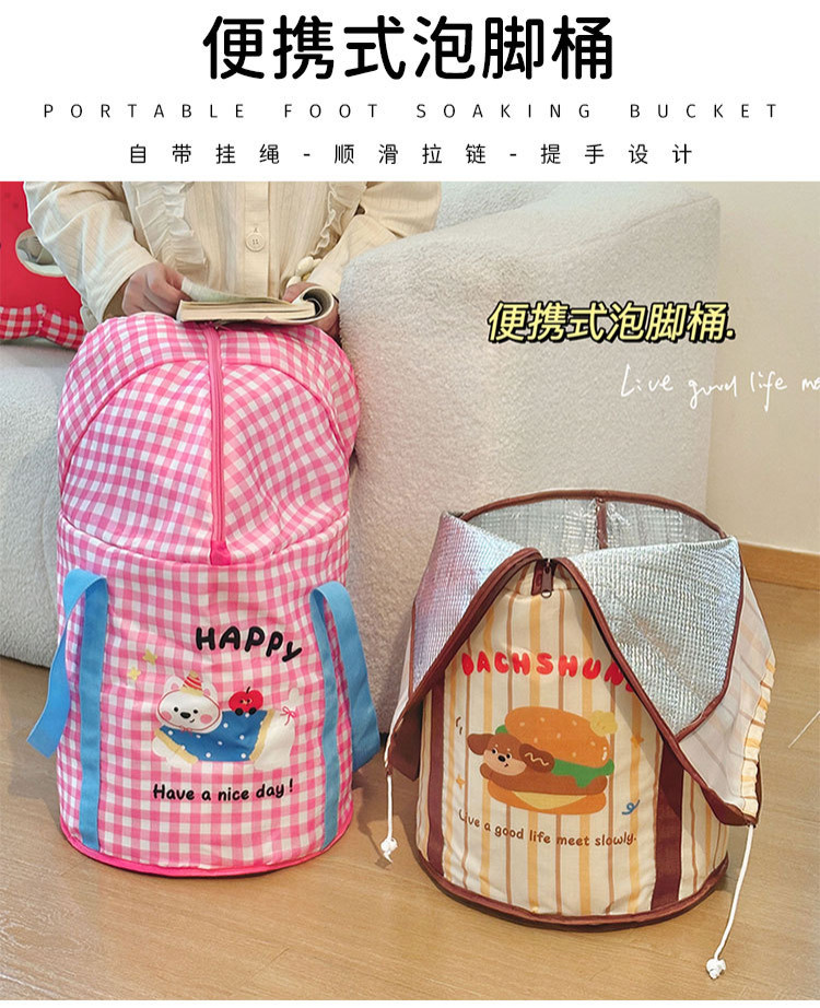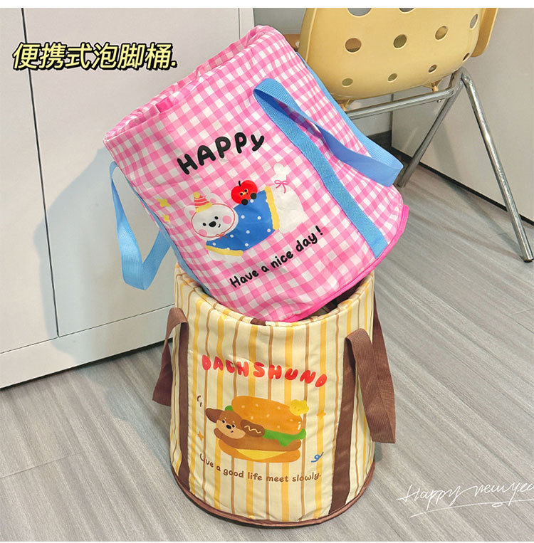 卡通创意设计泡脚盆便携手提保温带盖户外防水便携可折叠泡脚桶
