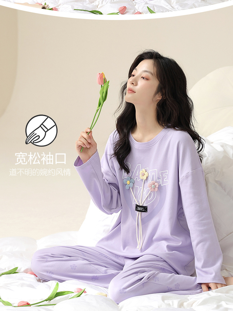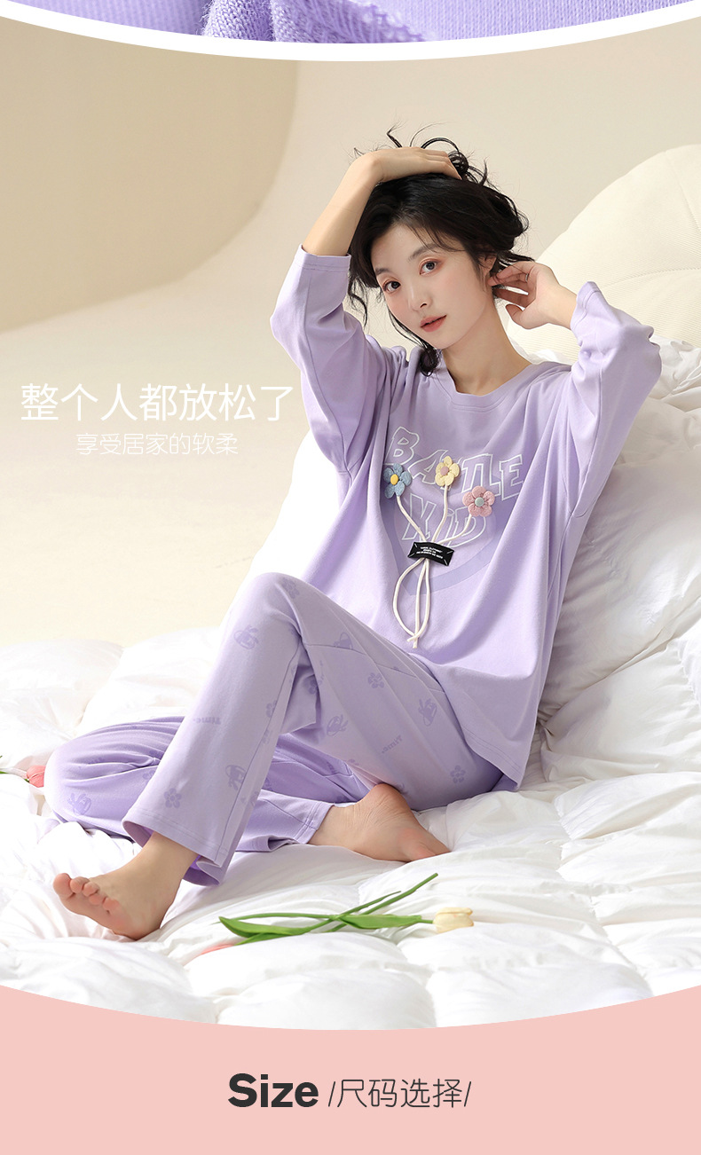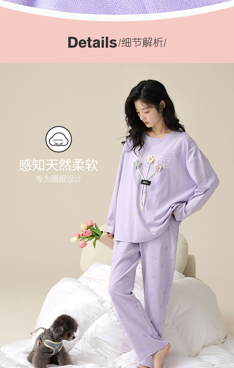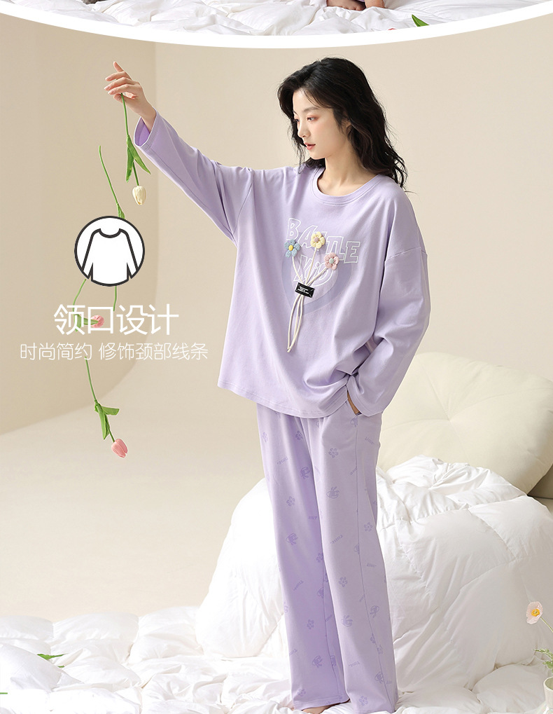女士睡衣秋冬季新款纯棉长裤长袖套头俩件套亲肤可外穿舒适家居服