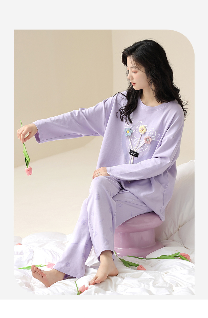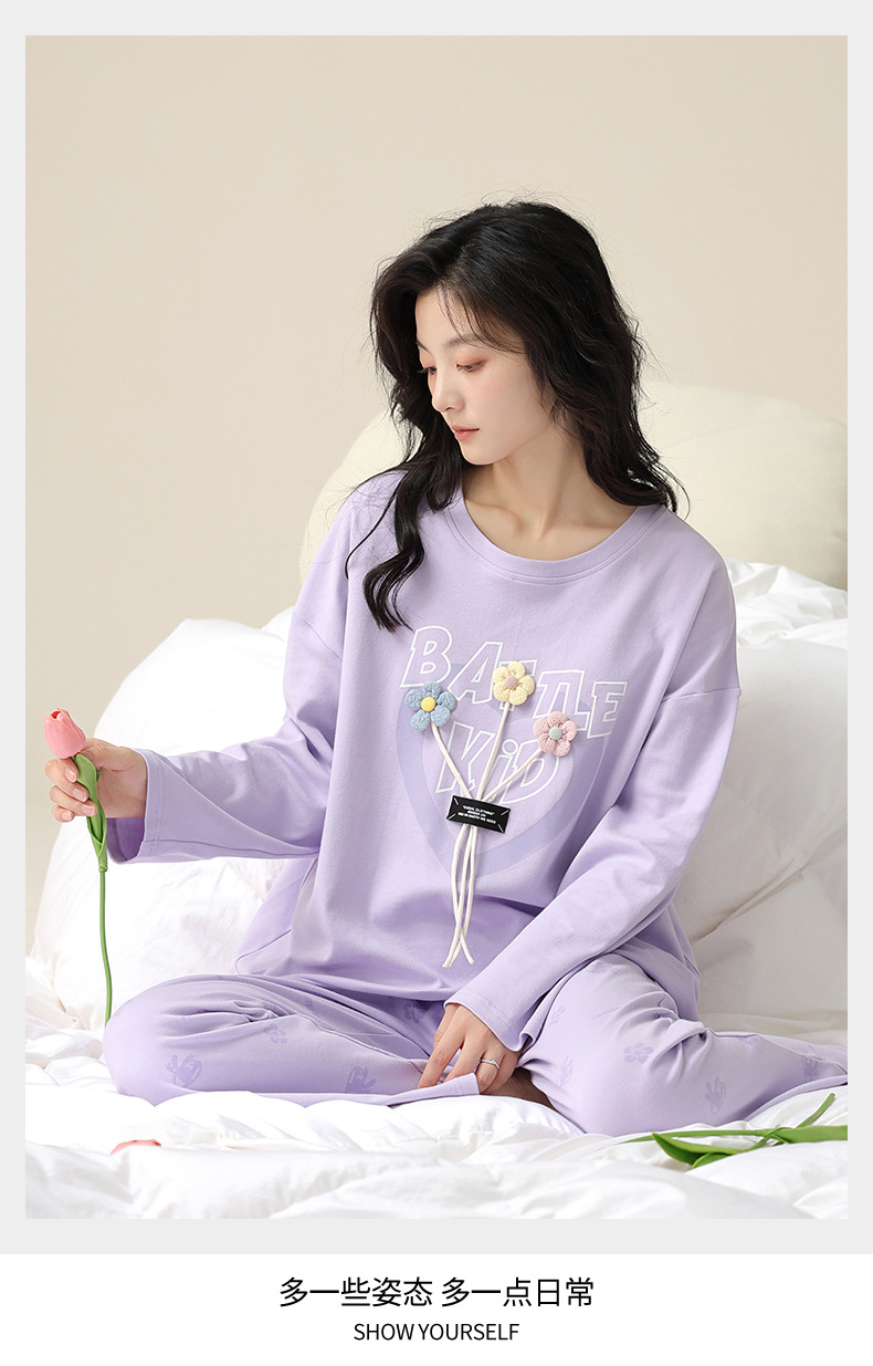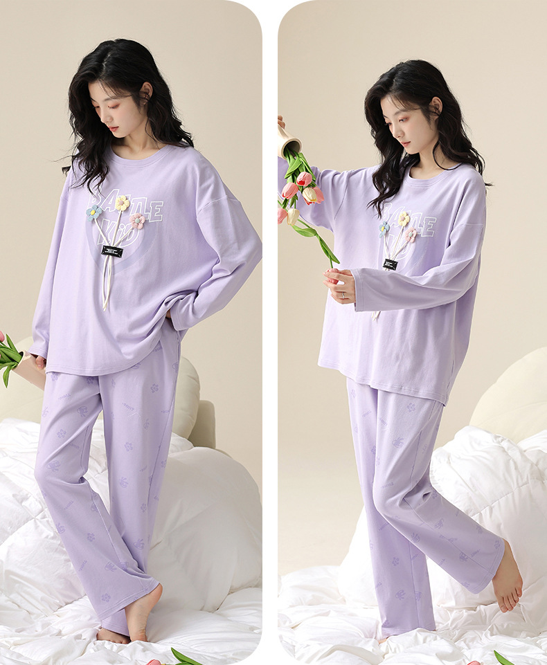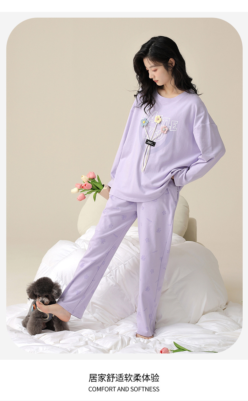 女士睡衣秋冬季新款纯棉长裤长袖套头俩件套亲肤可外穿舒适家居服
