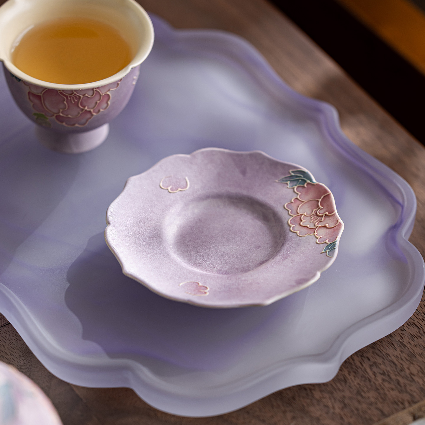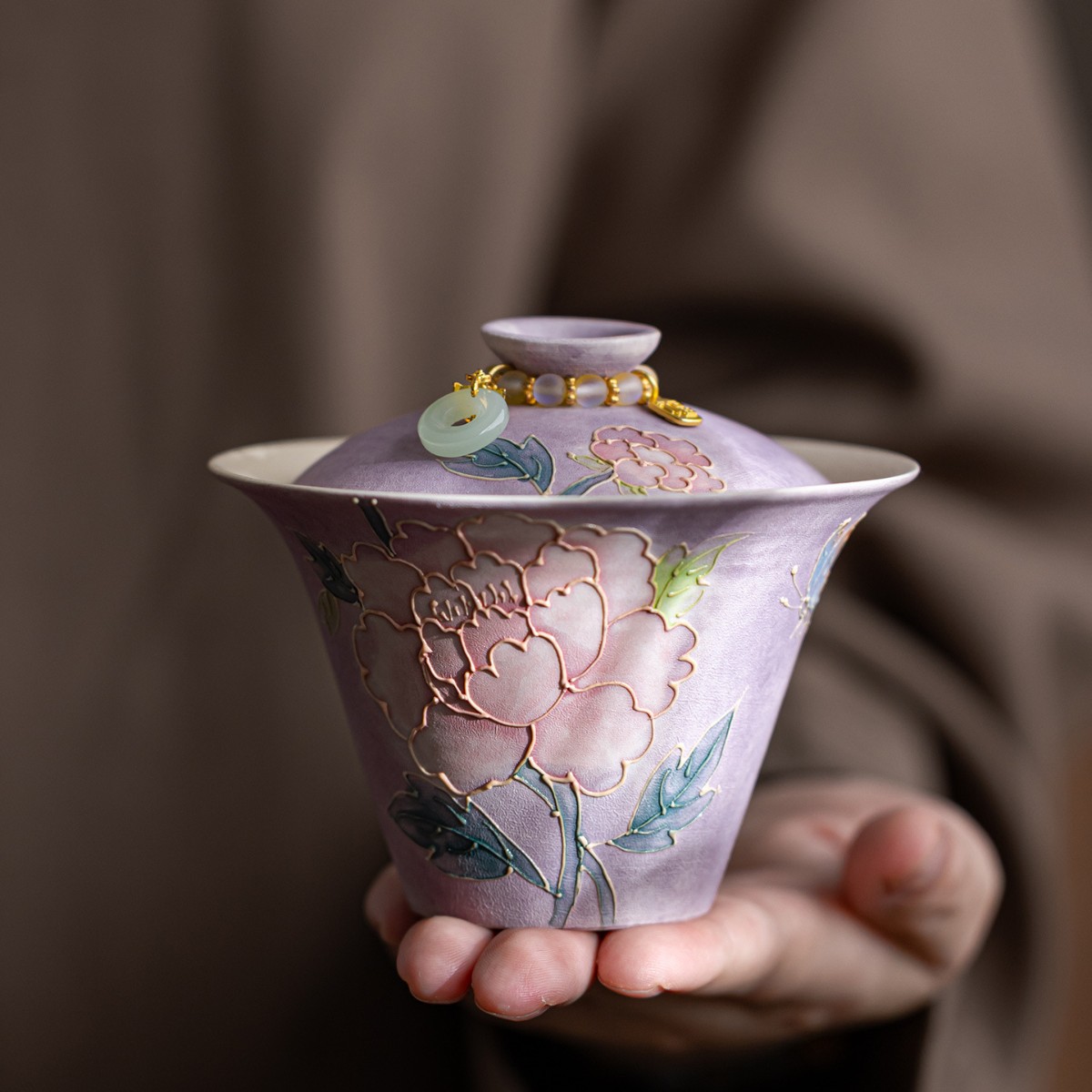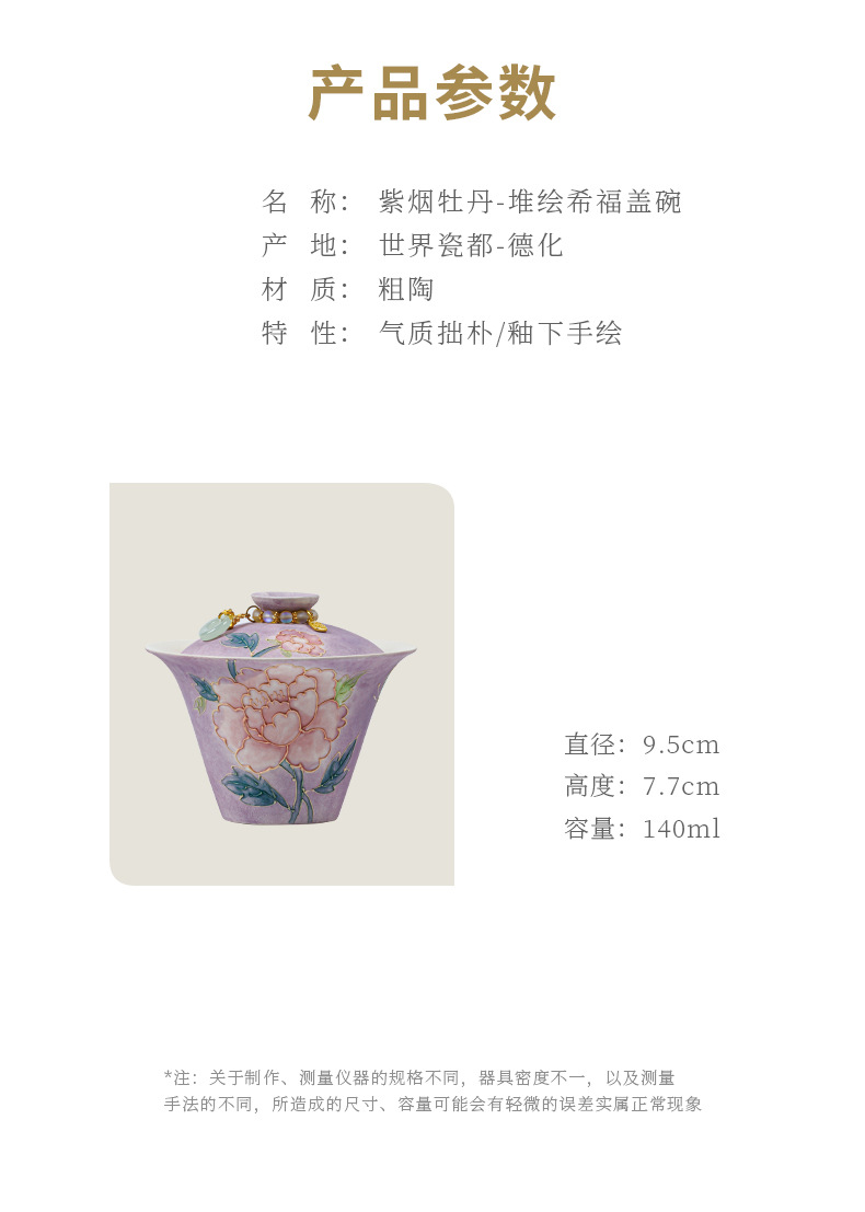 颜色 紫烟牡丹希福盖碗
