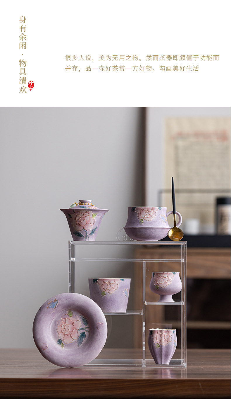 牡丹盖碗套装功夫茶具茶杯整套精致家用陶瓷泡茶具礼盒送人送女生