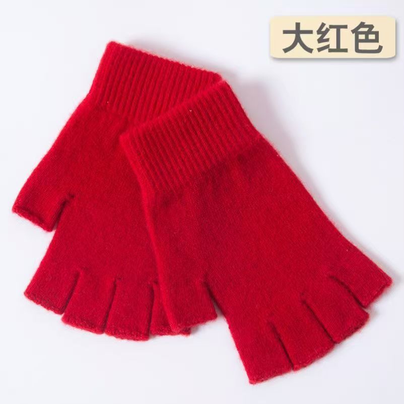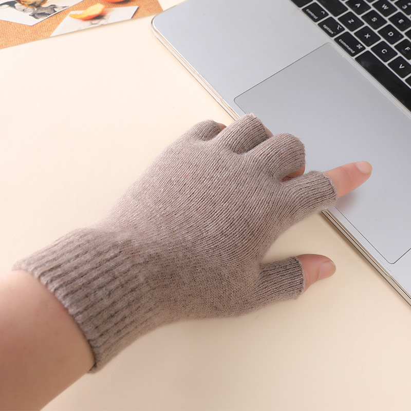 半分の指の手袋の冬の保温の新型の韓国版の純色の学生は字を書いて車を運転して手袋に乗って毛糸の手袋を編みます。