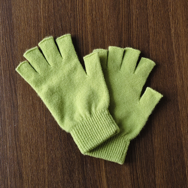 羊绒蚕丝办公室电脑打字儿童半指保暖手套女士写字露指游戏防寒冬