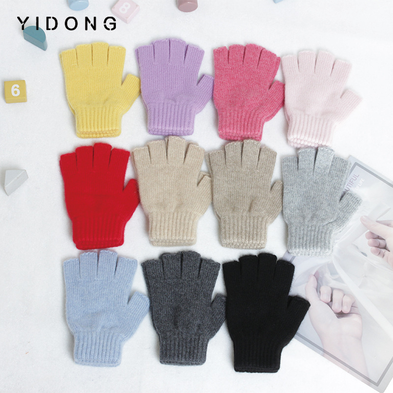 7針の厚いカシミヤのニットの保温防寒の子供の半分の指の手袋の冬の小学生の保温のカシミヤの手袋
