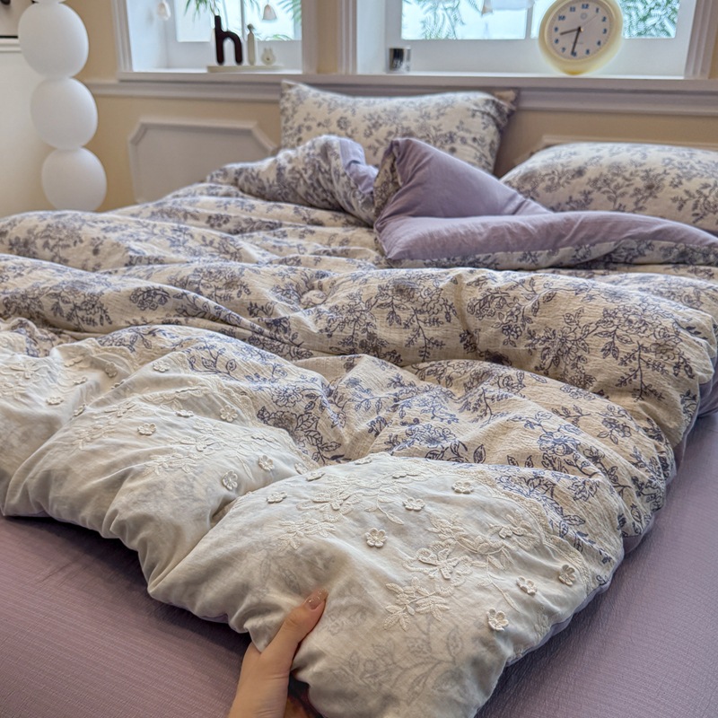 クロスボーダー無地ウォッシュコットン4点セット無地起毛キルトカバーB&Bベッドシーツ学生3点セットアマゾンベッドカバー
