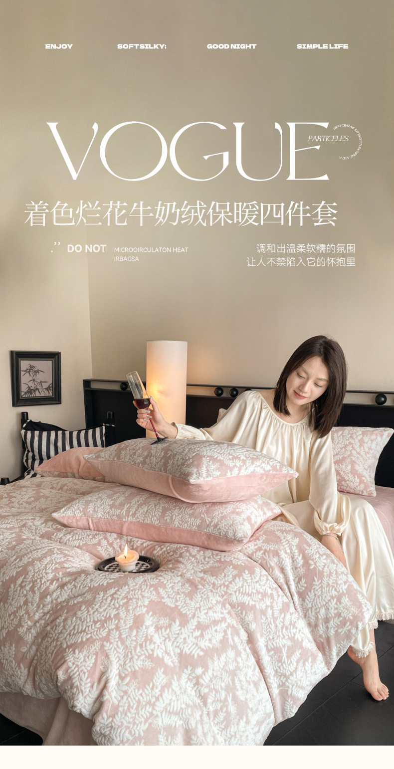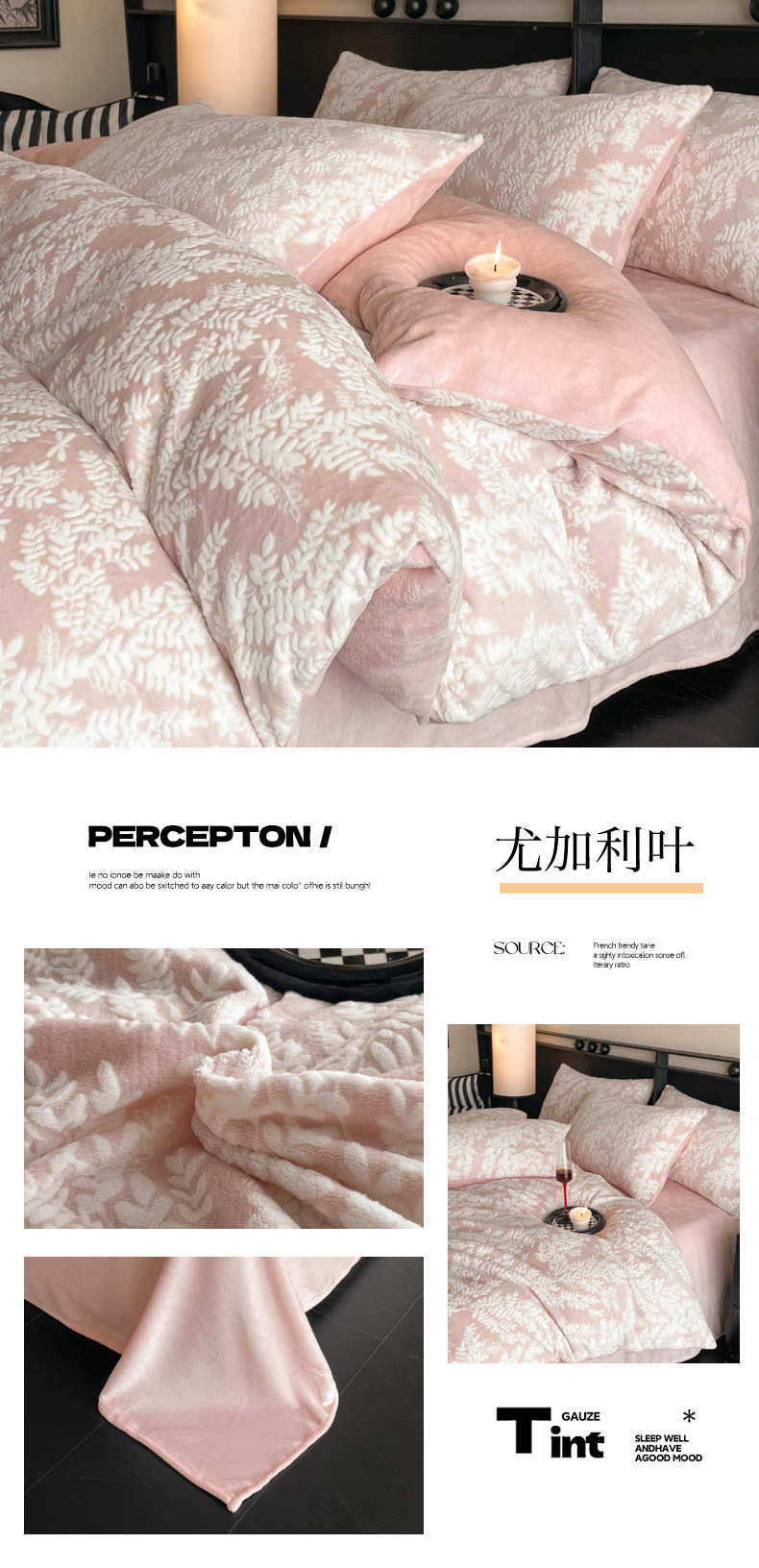 ins风冬季加厚烂花牛奶绒四件套珊瑚绒被套羊羔绒床单床笠三件套