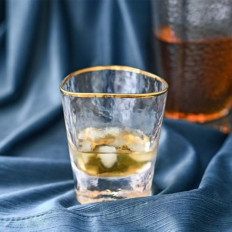 北欧の軽い豪華な金の縁のハンマーの紋様の三角のグラスの高い顔の値の水晶のワイングラスのシャンパンのコップの装飾のコップ