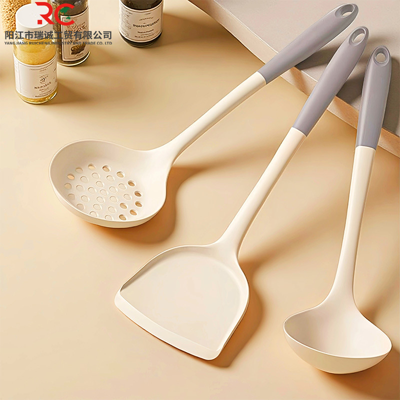 家用食品级灰白双色硅胶锅铲汤勺耐高温不伤锅炒菜铲饭勺捞篱批发