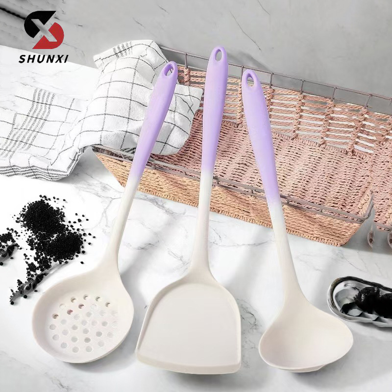 2色紫白シリカゲル鍋シャベル家庭用無粘鍋高温炒め料理シャベルスプーン漏れスプーンキッチンツールセット