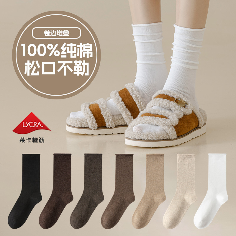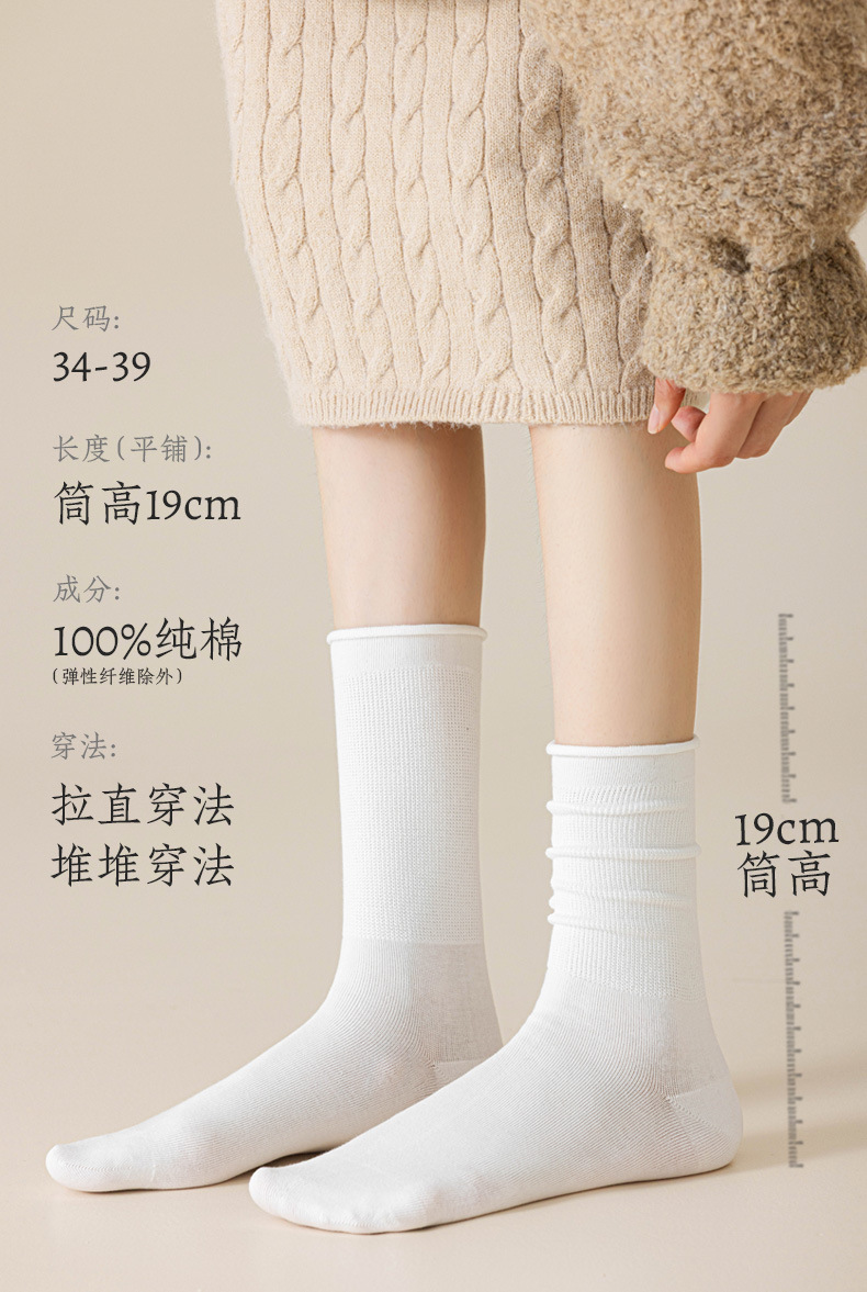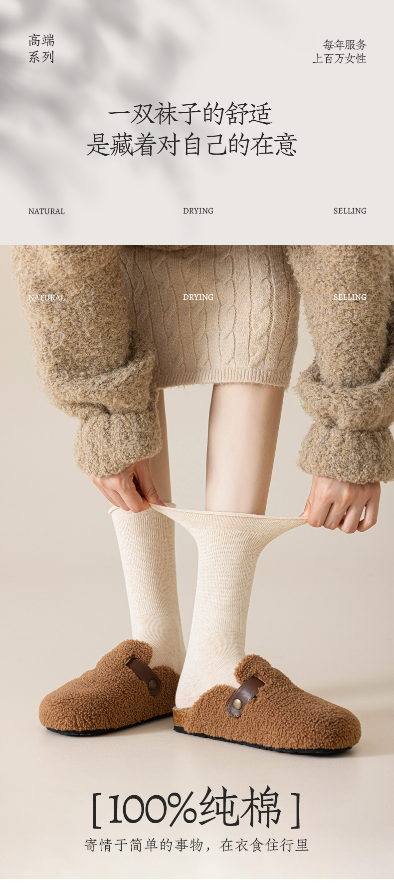 袜子女纯棉长筒堆堆秋冬日系加厚中筒女袜松口保暖月子袜吸汗防臭
