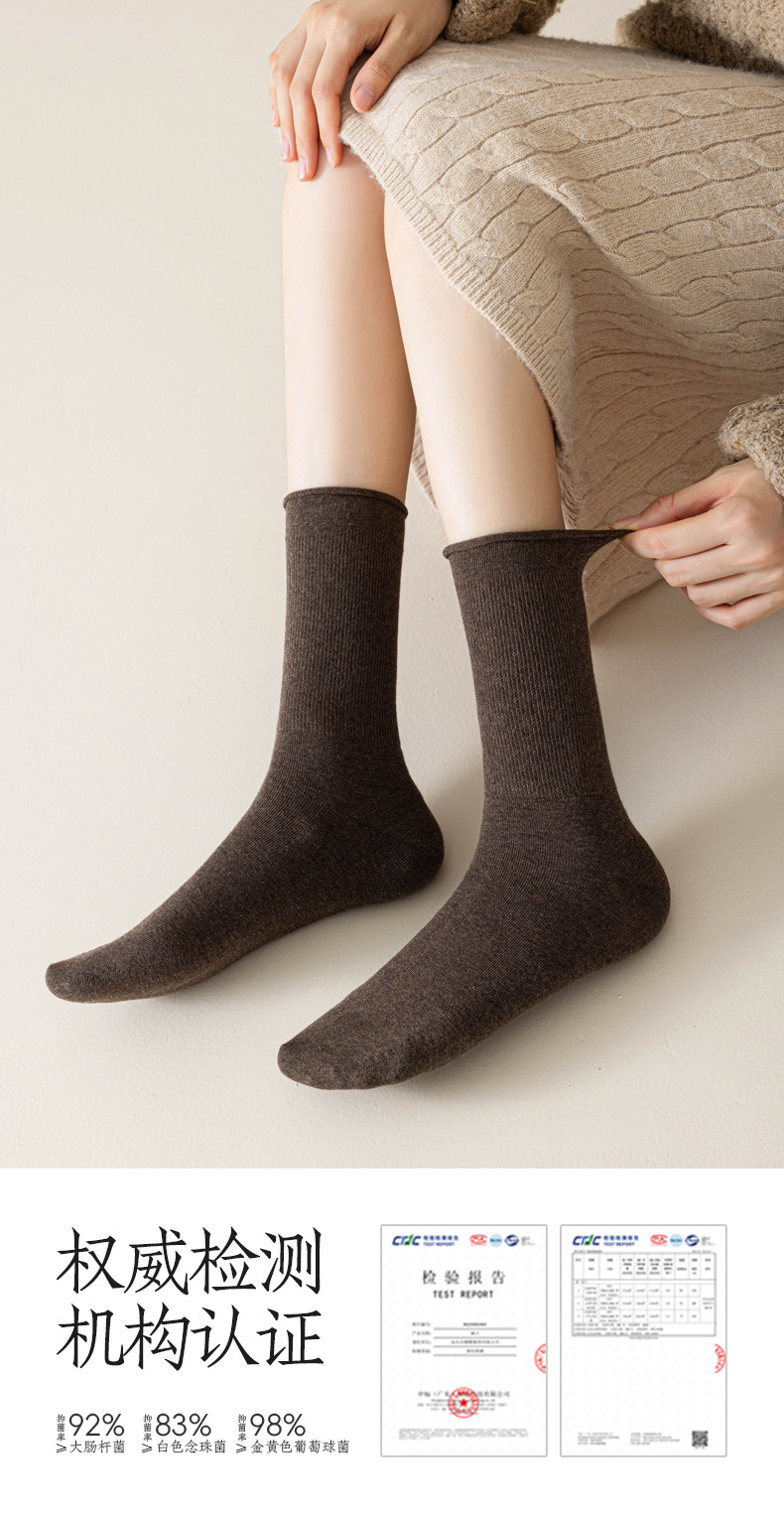 秋冬袜子女款纯棉美拉德中筒堆堆袜10A抗菌防臭长筒袜松口月子袜