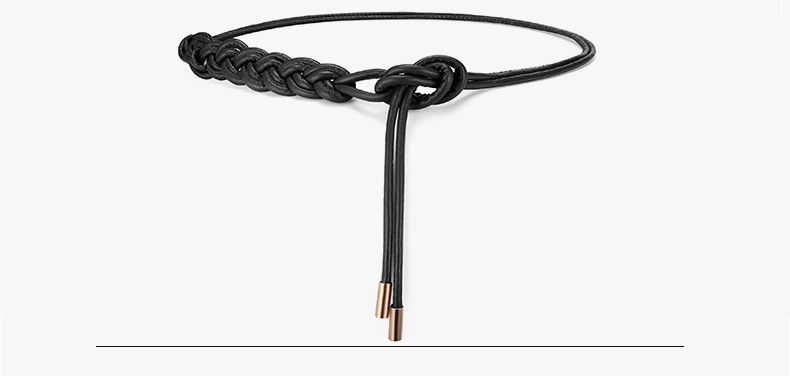 新商品の細い柔らかい編みの革紐のベルトの装飾の女性は腰を収めてやせています。ワンピースの長いシャツと腰のチェーンを結びます。