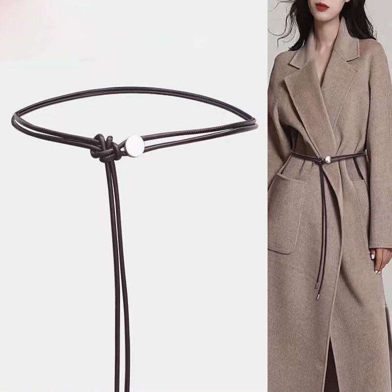 新款设计感编织皮绳细腰带装饰裙子毛衣显瘦可调节长款腰绳现货