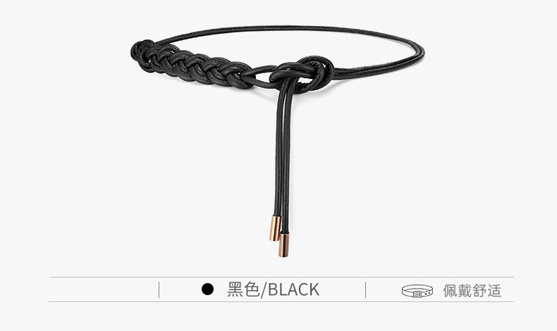 2025年の新型デザイン感の黒いウエストロープの高級感の細いベルトとワンピースのスカートの細いウエストシールの女性の卸売り