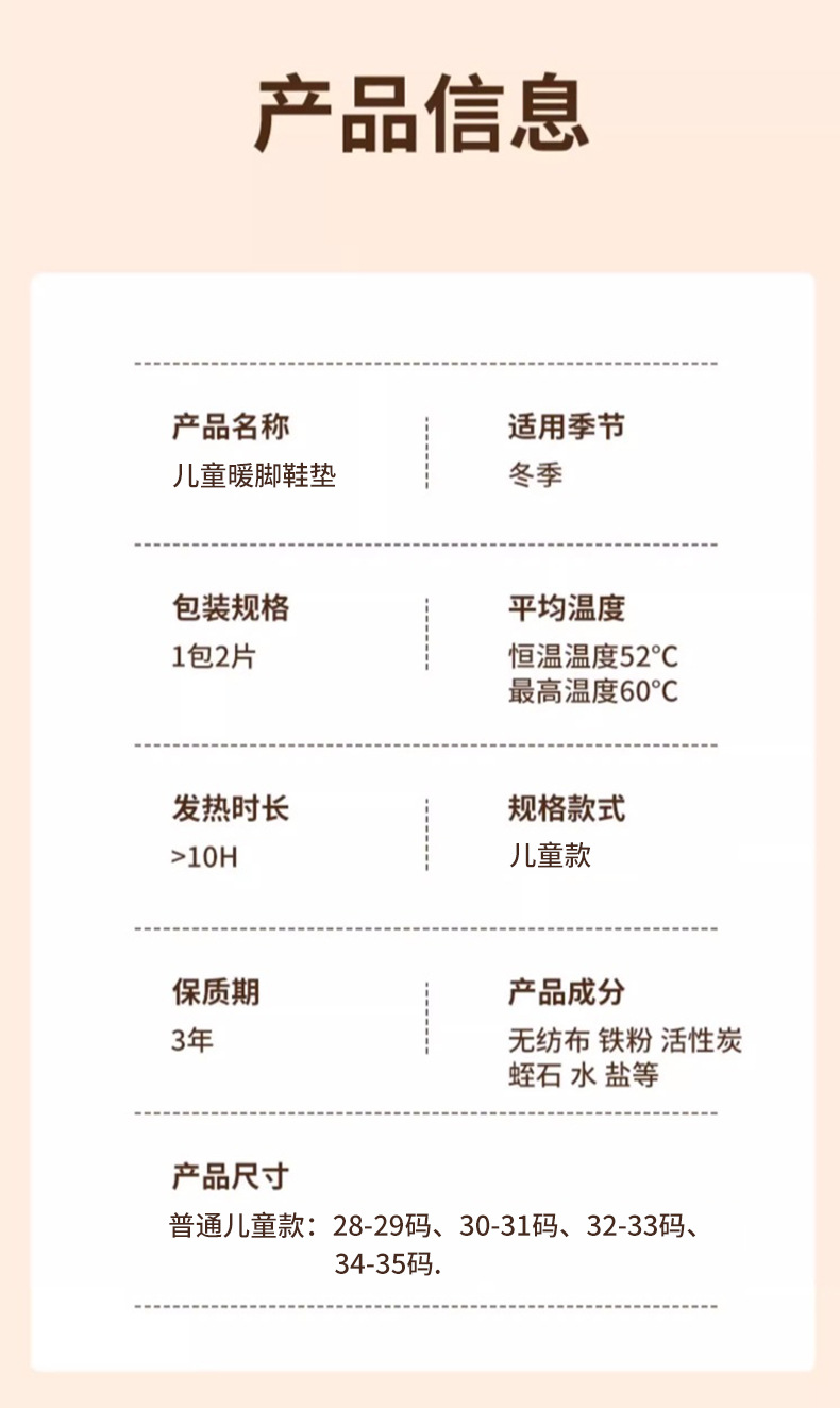 儿童发热鞋垫持久恒温防滑防寒自大小童上课暖身脚垫防艾草暖足贴