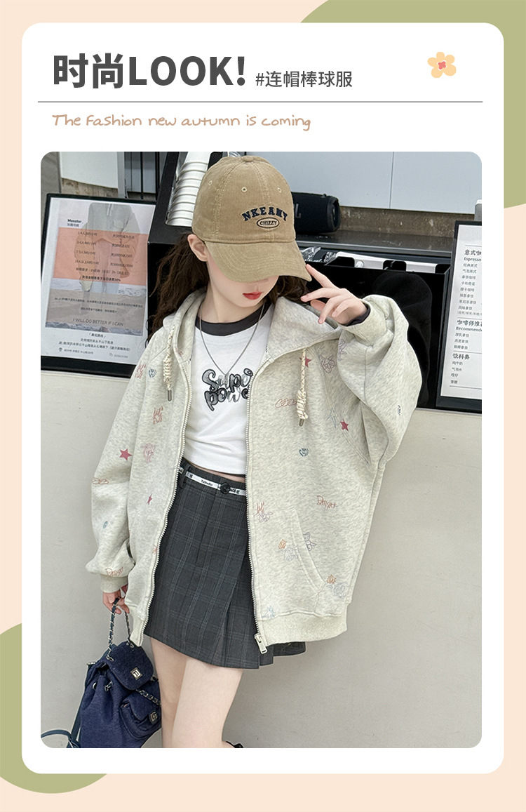 女童连帽卫衣外套2025秋季新款大童韩版星星印花卡通休闲帽衫上衣