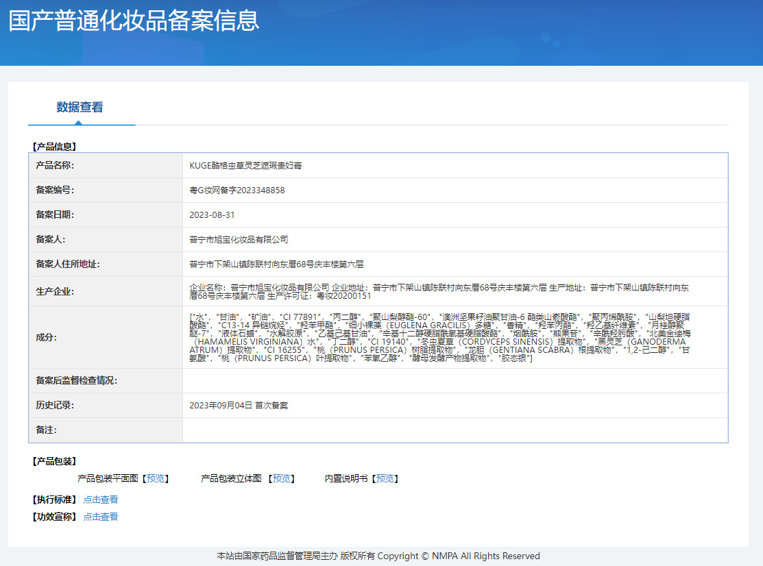 非特化妆品备案证号 粤G妆网备字2023348858