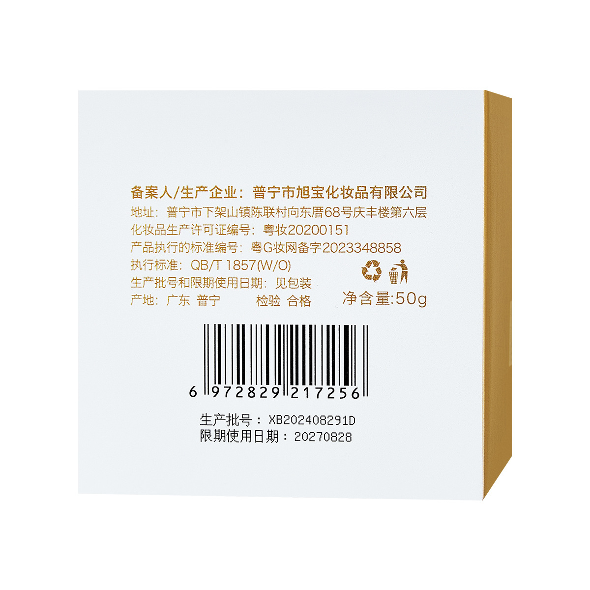 生产许可证号 粤妆20200151