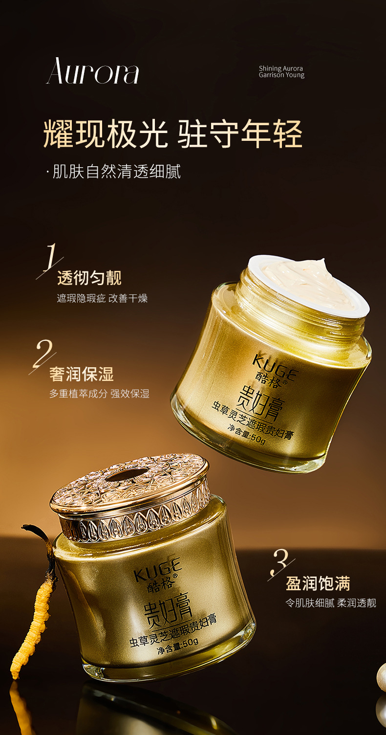 酷格虫草灵芝遮瑕贵妇膏(大白盒)正品面霜化妆品保湿护肤批发女