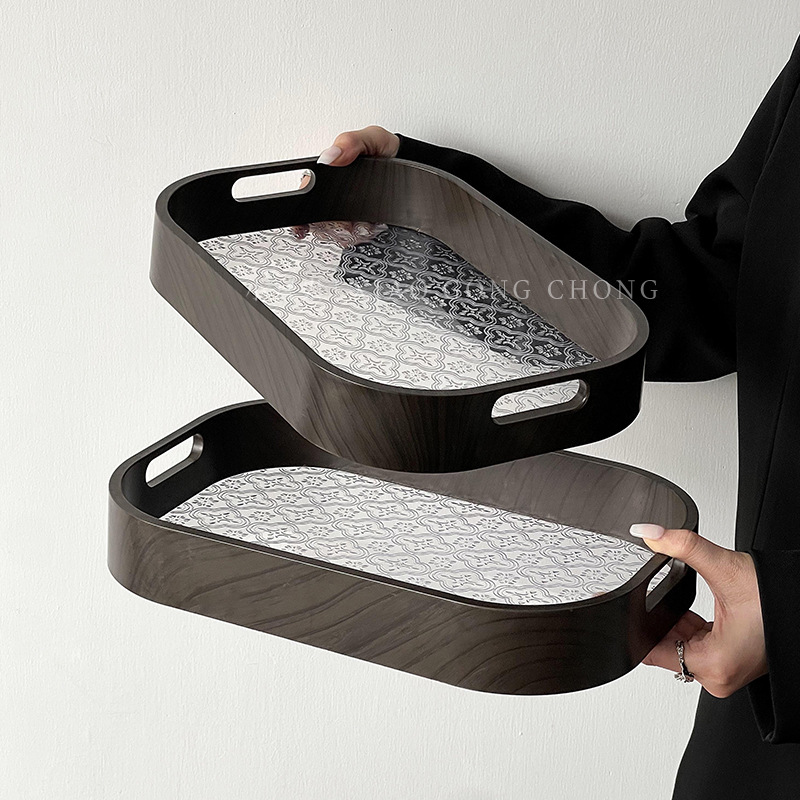 仿木纹托盘复古茶盘茶杯水杯收纳盘家用茶几托盘点心盘水果盘