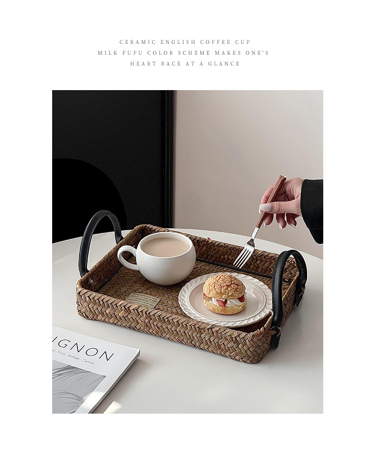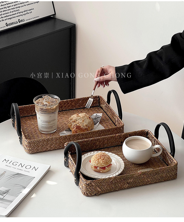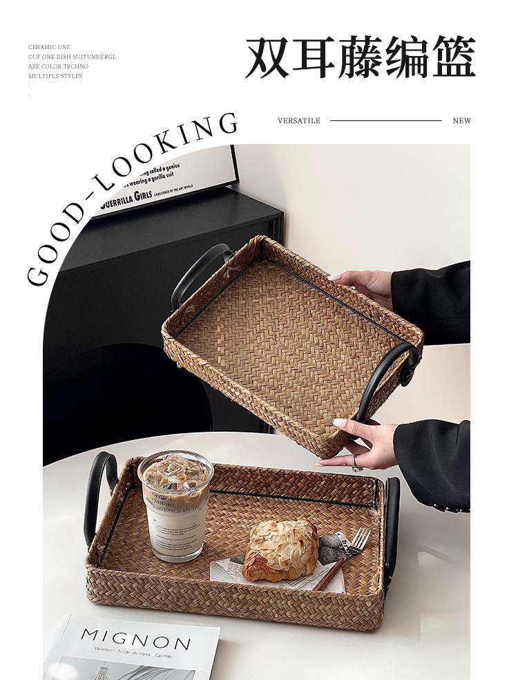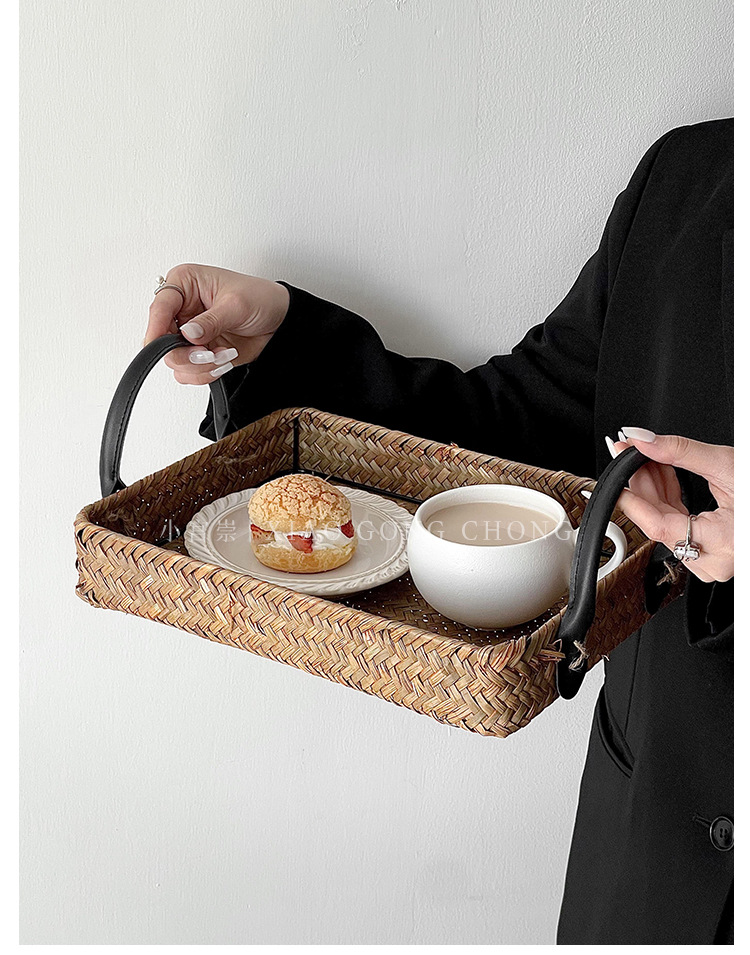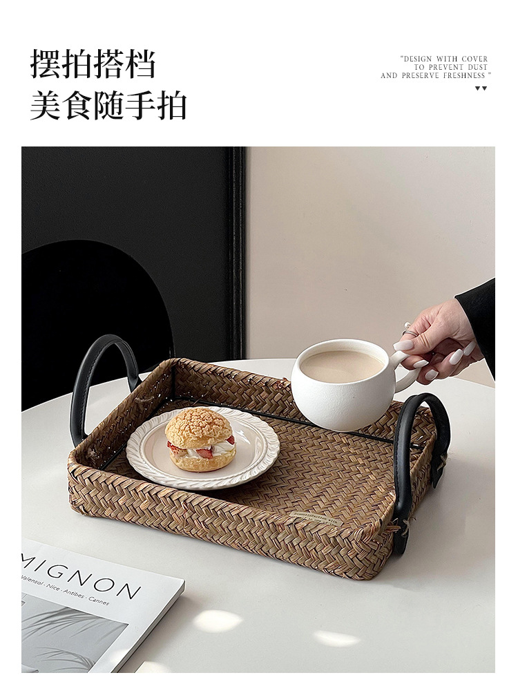 藤编托盘户外野餐篮家用零食盘餐桌收纳盘水果篮蛋糕面包甜品盘