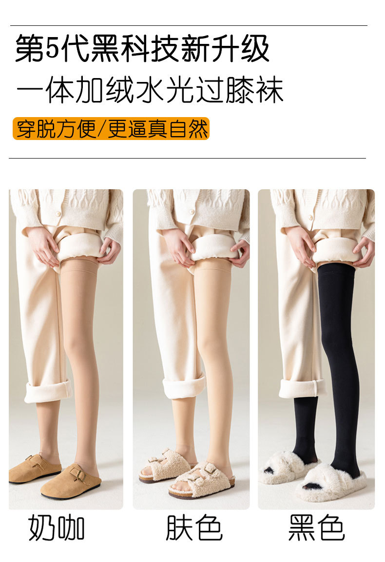 袜子女冬季保暖加厚加绒过膝袜黑色肤色长筒袜防滑大腿袜水光丝袜