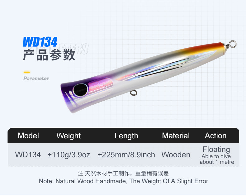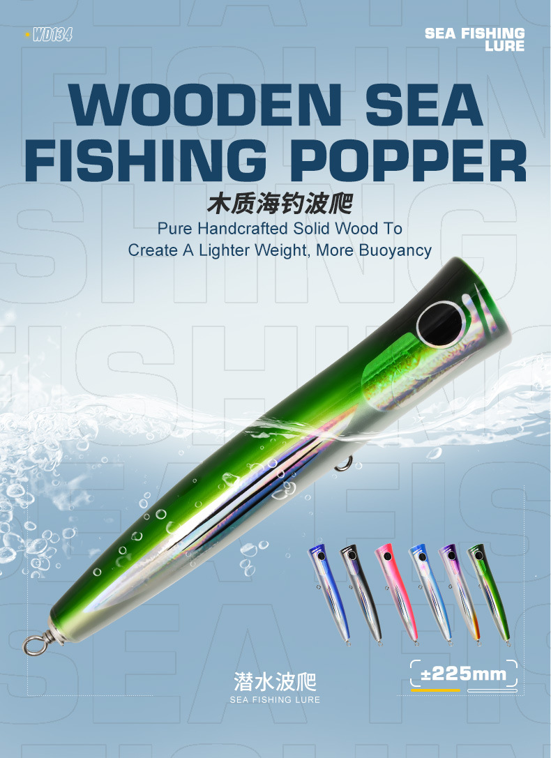 浮水木头鱼±22.5cm船钓抛投假饵金枪GT牛港马鲛海钓鱼饵woodlure