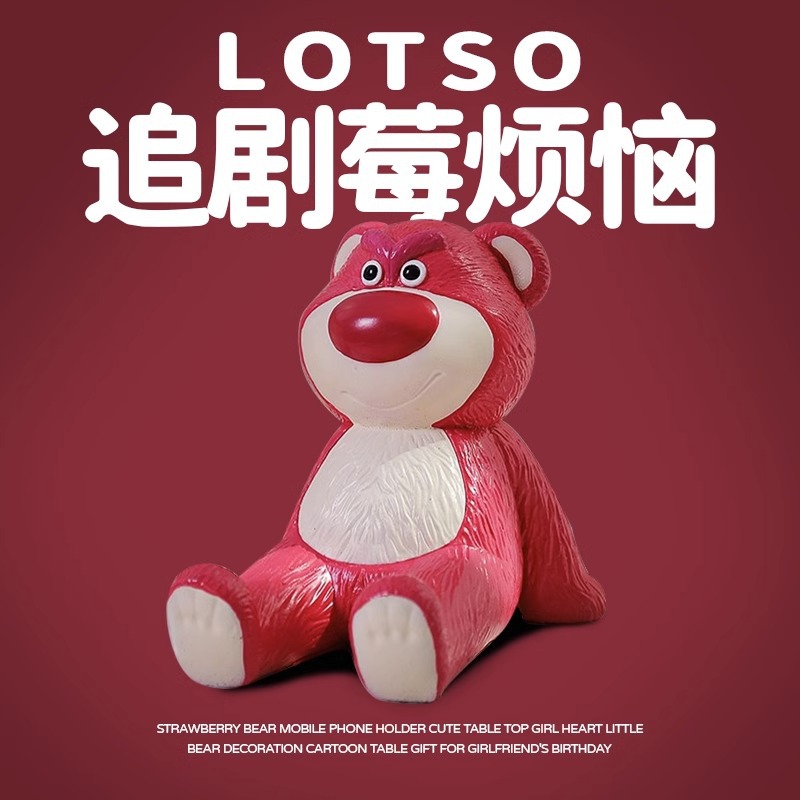 いちご熊の暴力的な熊の携帯電話のスタンドの漫画のゴムのおもちゃのデスクトップの置物の自動車の置物の贈り物の卸売り