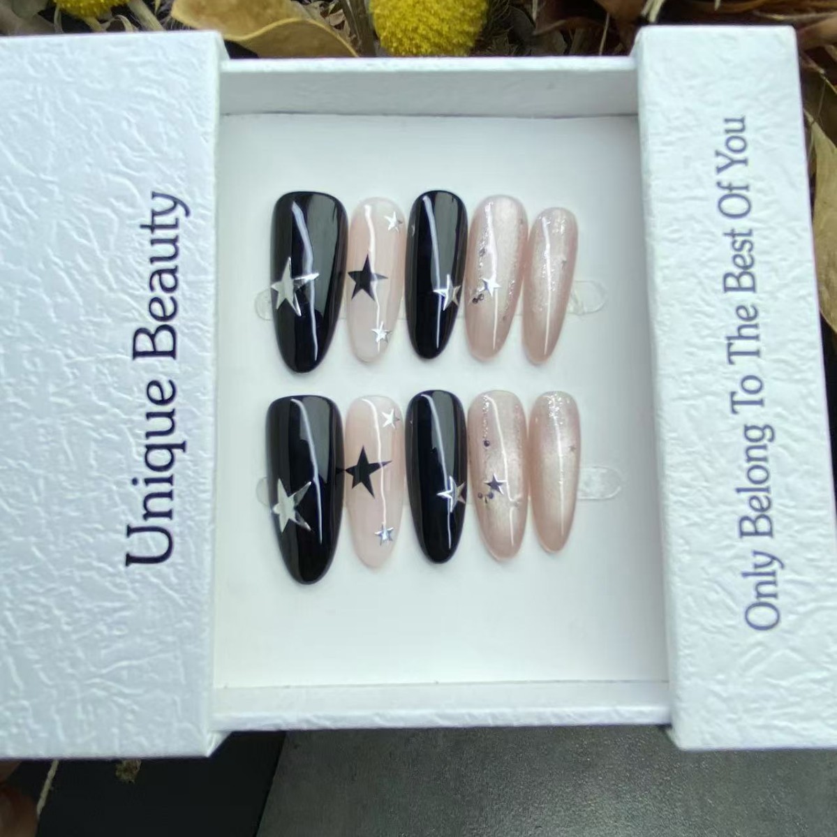 Yue Fingertip 手作りキャットアイスター美白雰囲気気質マニキュアウェアラブルネイル取り外し可能なネイルパッチ