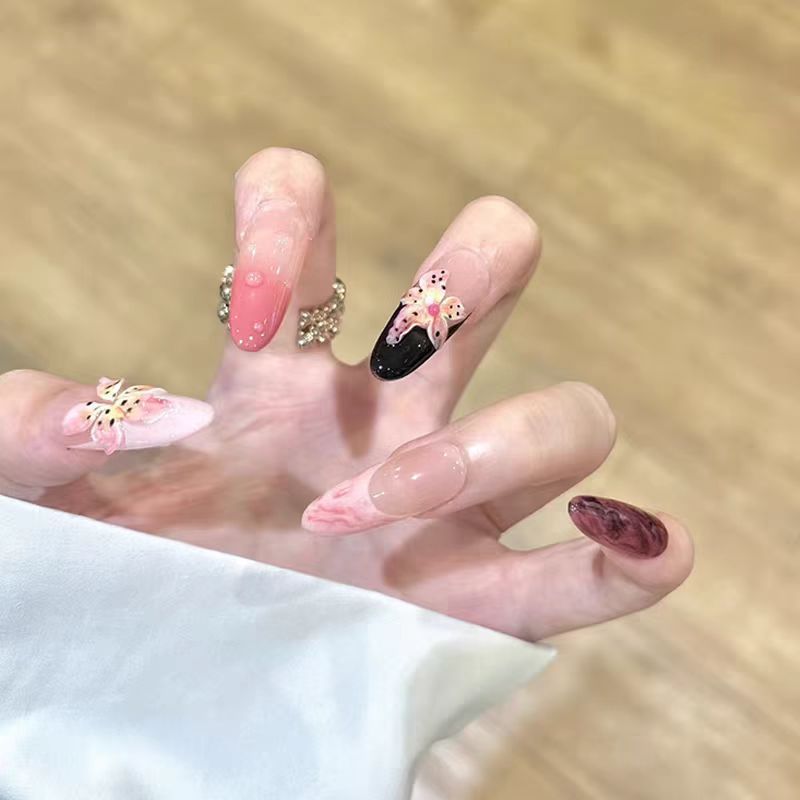 手工穿戴甲长款立体雕花晕染小众ins法式水珠渐变甲片高级感美甲