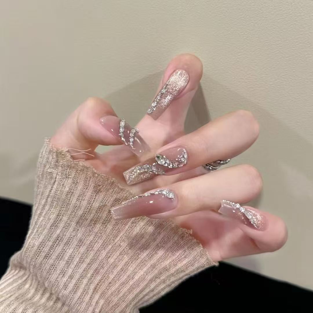 江蘇、浙江、上海の貴族のような雰囲気の独身女性向けの手作りマニキュア、ウェアラブルマニキュア、輝くダイヤモンドチェーンキャットアイマニキュア
