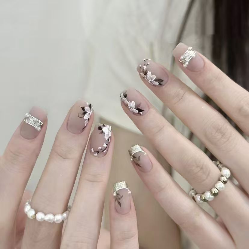 純手作りのネイル、中国風手描き水彩、古代風美人の雰囲気、高級感、美白効果、取り外し可能なネイル
